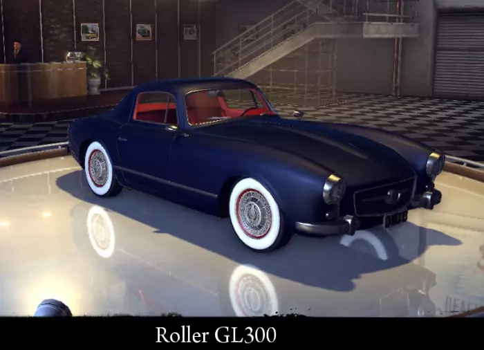 有趣的事实: 原型为1940年款Willys Speedway Coupe。 Roller GL 300 小型双门德国运动轿车。 标准性能参数: 功率 157千瓦 最高速度 239公里/小时 重量 1250公斤 升级后性能参数: 功率 185千瓦 最高速度 252公里/小时 重量 1250公斤 “运动改装”升级: 功率 185千瓦 最高速度252 千米/小时 重量 1120 千克 【压缩机安装】强化: 功率 226 千瓦 最大速度 259 千米/小时 重量 1120 千克