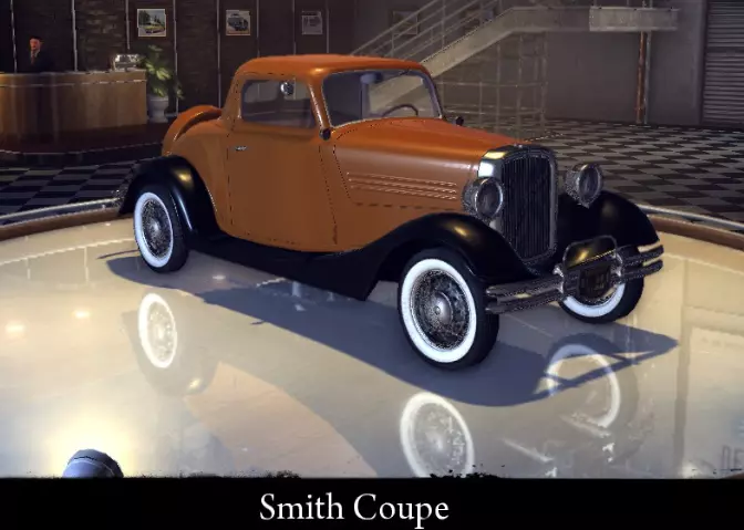 有趣的事实: *原型为1934年款福特豪华福特轿车。 *在《四海兄弟:失落的天堂》中名为Bolt V8。 *Smith V8是唯一配备喇叭的汽车。 Smith Coupe Smith Coupe是Smith品牌的一款廉价双座轿跑。即使以1945年的标准来看也相当老旧。 标准性能: 功率 38千瓦 最高速度 113公里/小时 重量 1090公斤 升级后性能: 功率 50千瓦 最高速度124 千米/小时 重量 1090 千克 【运动改装】强化: 功率 50 千瓦 最高速度 134 千米/小时 重量 980 千克 【压缩机安装】强化: 功率 85 千瓦 最高速度 161 千米/小时 重量 980 千克