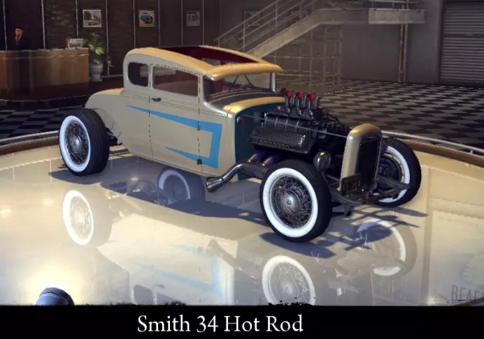 有趣的事实: 原型为1937年款福特V8 Deluxe Pickup。 Smith 34 Hot Rod 基于真实车型福特Model A打造的改装车,采用5窗轿跑车身。 标准性能参数: 功率 150千瓦 最高速度 182公里/小时 重量 1015公斤 强化性能参数: 功率 180千瓦 最高速度 192公里/小时 重量 1015公斤 "运动改装"强化: 功率 215千瓦 最高速度203公里/小时 重量 912千克