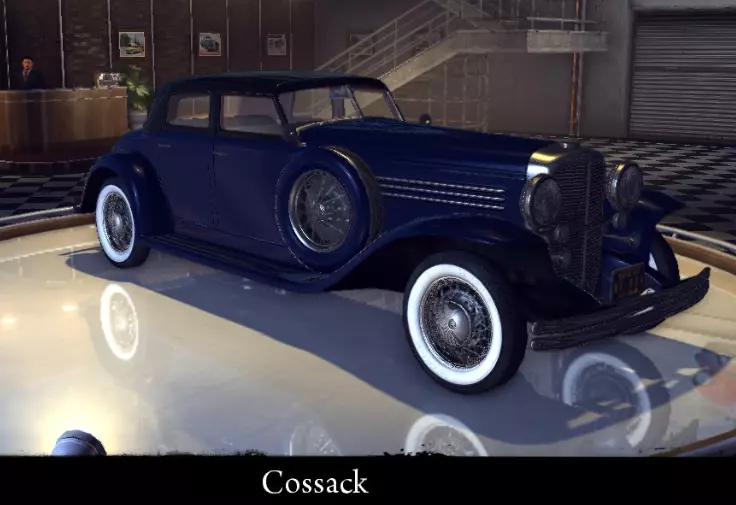 有趣的事实: - 其原型是1955年的林肯·未来(Lincoln Futura)概念车。 - 是游戏中最长的车辆。 - 概念车是未来汽车的原型,用于展示新风格、新设计和新技术。杰斐逊·未来(Jefferson Futura)的真实原型正是如此——林肯·未来(Lincoln Futura)。 哥萨克(Cossack) 这是一款四门豪华轿车,其独特的设计让人第一眼就忍不住驻足细看。这是一辆修长且宽敞的车辆,在赛道上拥有相当不错的速度。 标准性能参数: 功率 198千瓦 最高速度 191公里/小时 重量 2400公斤 强化性能参数: 功率 238千瓦 最高速度 199公里/小时 重量 2400公斤 【运动改装】强化: 功率 238千瓦 最高速度199 千米/小时 重量 2200 千克 【压缩机安装】强化: 功率 274 千瓦 最大速度 207 千米/小时 重量 2200 千克