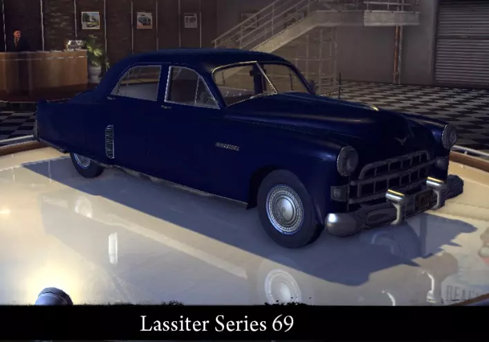 有趣的事实: - 原型为宝马507。 - 仅出现在好莱坞天文台区域。 - 不会在交通中出现。 Lassiter Series 69 为高管或黑手党设计的舒适豪华四门轿车。 标准性能: 功率 120千瓦 最高速度 165公里/小时 重量 1873公斤 升级后性能: 功率 143千瓦 最高速度173 千米/小时 重量 1873 千克 【运动改装】强化: 功率 143 千瓦 最高速度 173 千米/小时 重量 1680 千克 【压缩机安装】强化: 功率 166 千瓦 最高速度 189 千米/小时 重量 1680 千克