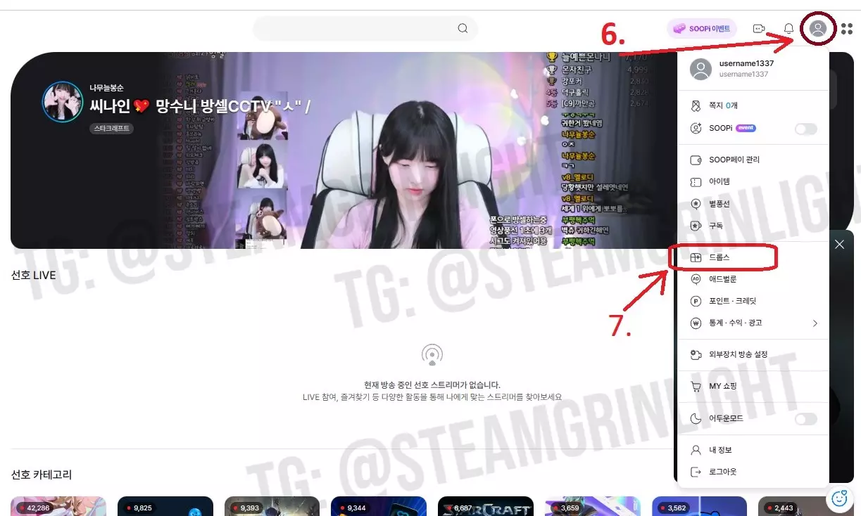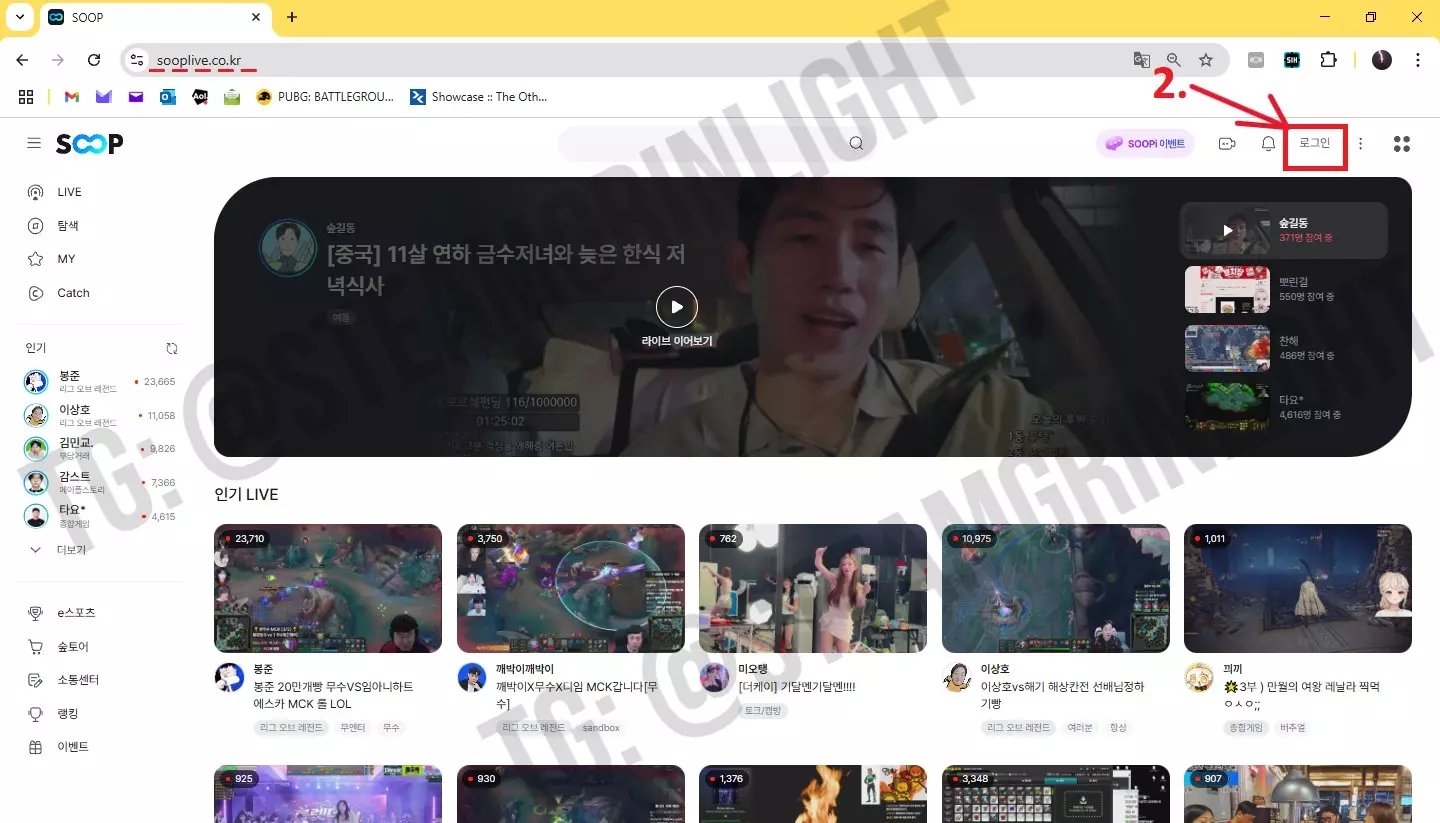 注册 1. 访问韩国类似Twitch的直播平台; 2. 点击【登录】开始注册。