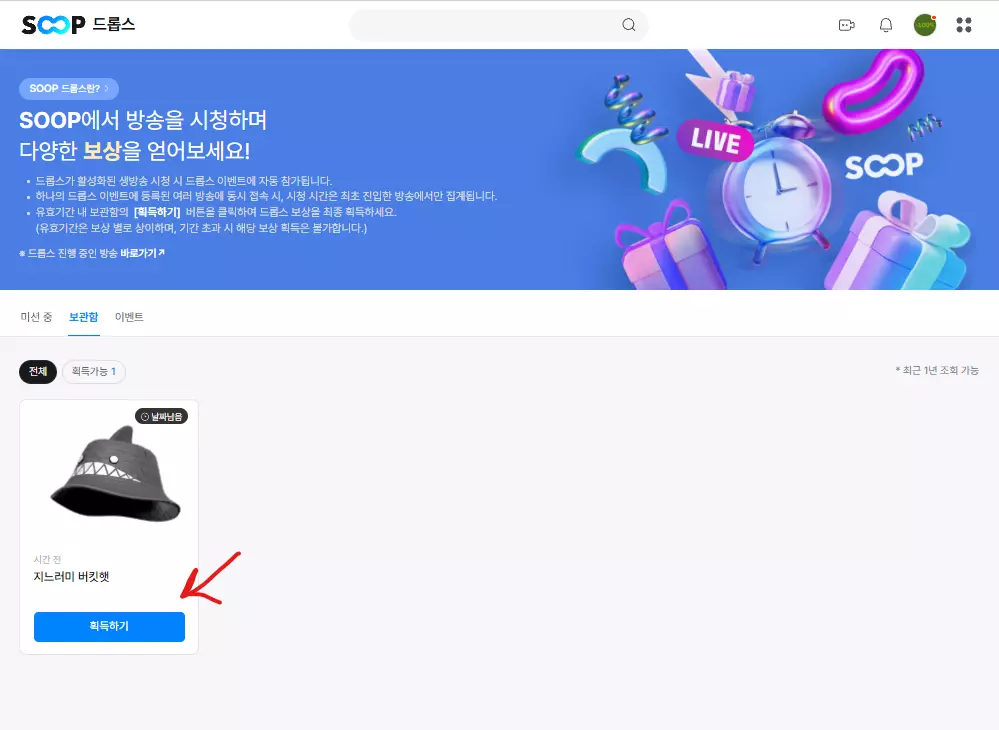 完成任务 6. 点击您的账户图标; 7. 选择掉落物标签页。