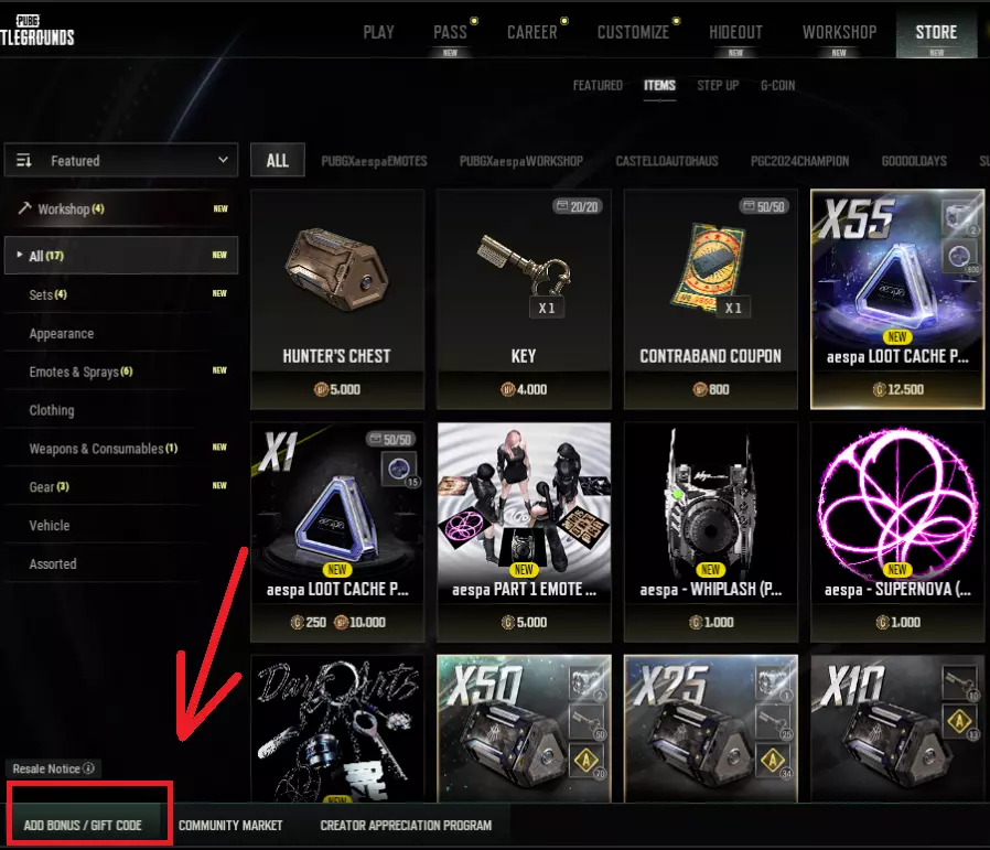 进入PUBG掉落物相关板块