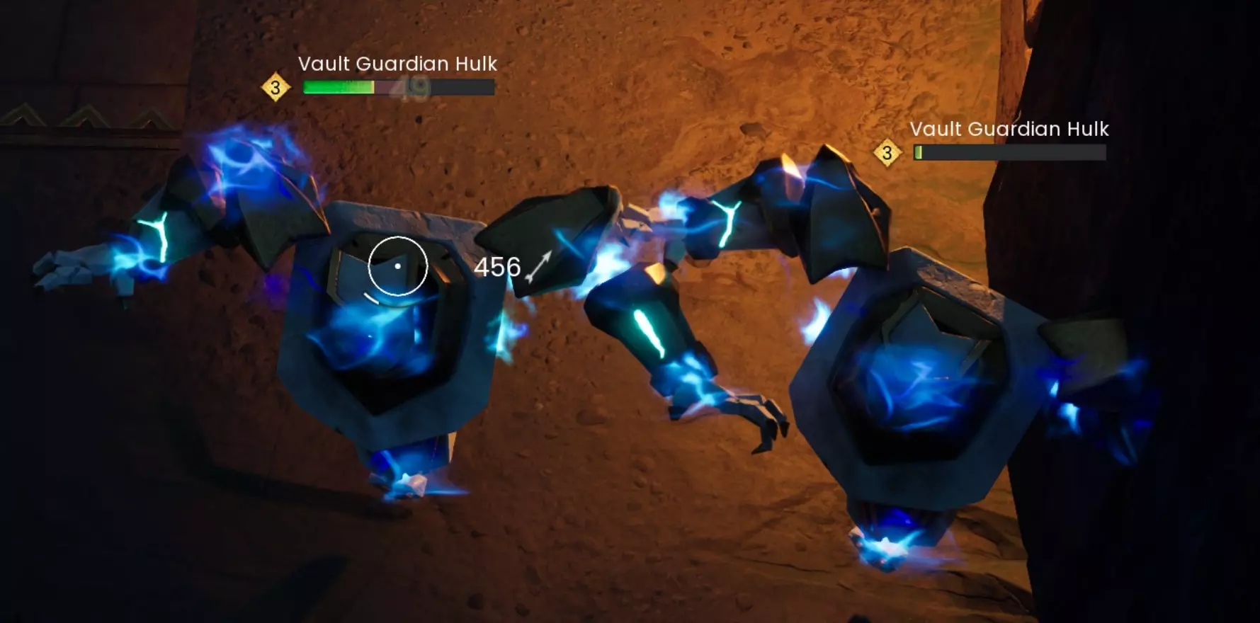 跳到曾经放置保险库核心的第三层,从上方射击他们。调整你的位置,确保能看到他们并持续开火。对剩余敌人重复此操作。