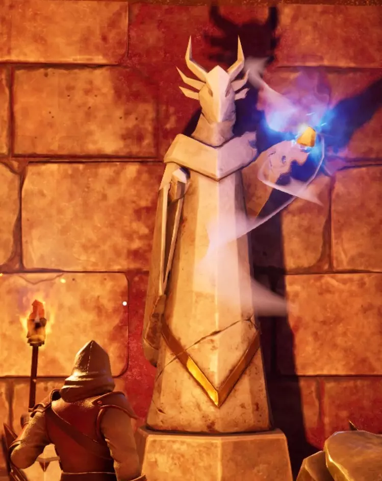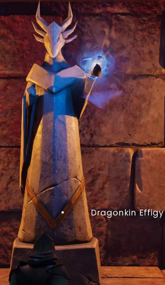 正前方的地板陷阱后面有一个小壁龛,里面有一个龙人雕像。与它互动可以学习圣骑士板甲的制作配方。