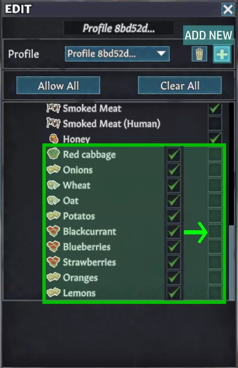 将名称“Profile 8bd52d...”更改为你自己的新档案,并选择你想要的食物和兴奋剂。