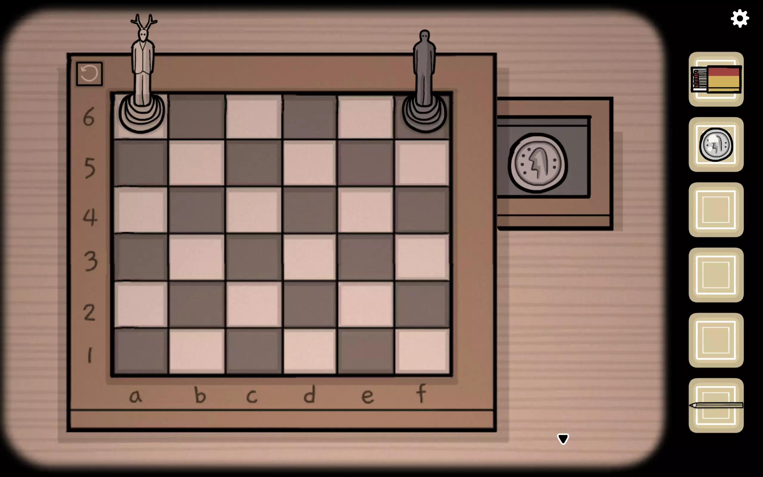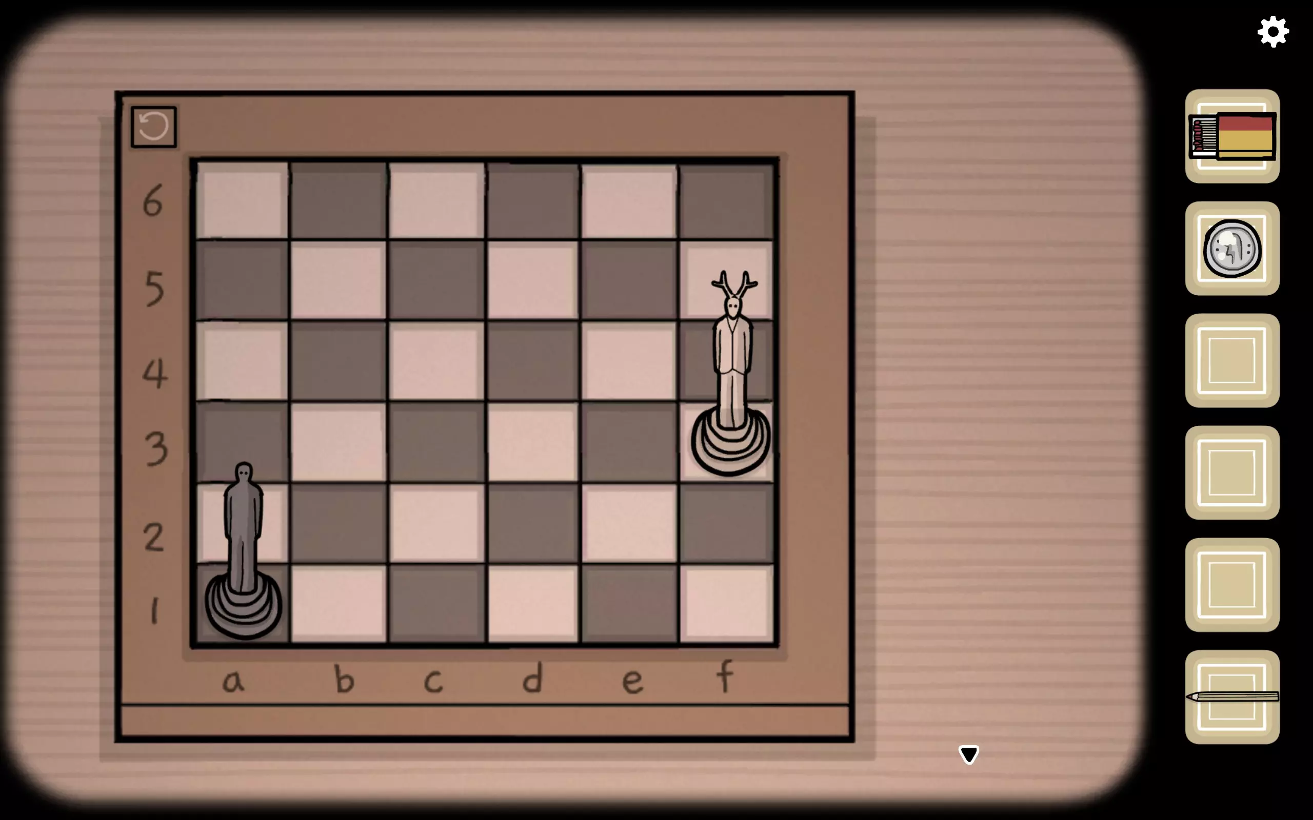 过去:告诉白子从哪里移动到哪里 未来:移动白子后,黑子会自动移动,此时需告诉黑子从哪里移动到哪里 过去:移动黑子后,白子会自动移动 重复以上动作数次,过去方将获得硬币 若未来方未走错,将获得成就Checkmate,这是未来的第四个成就