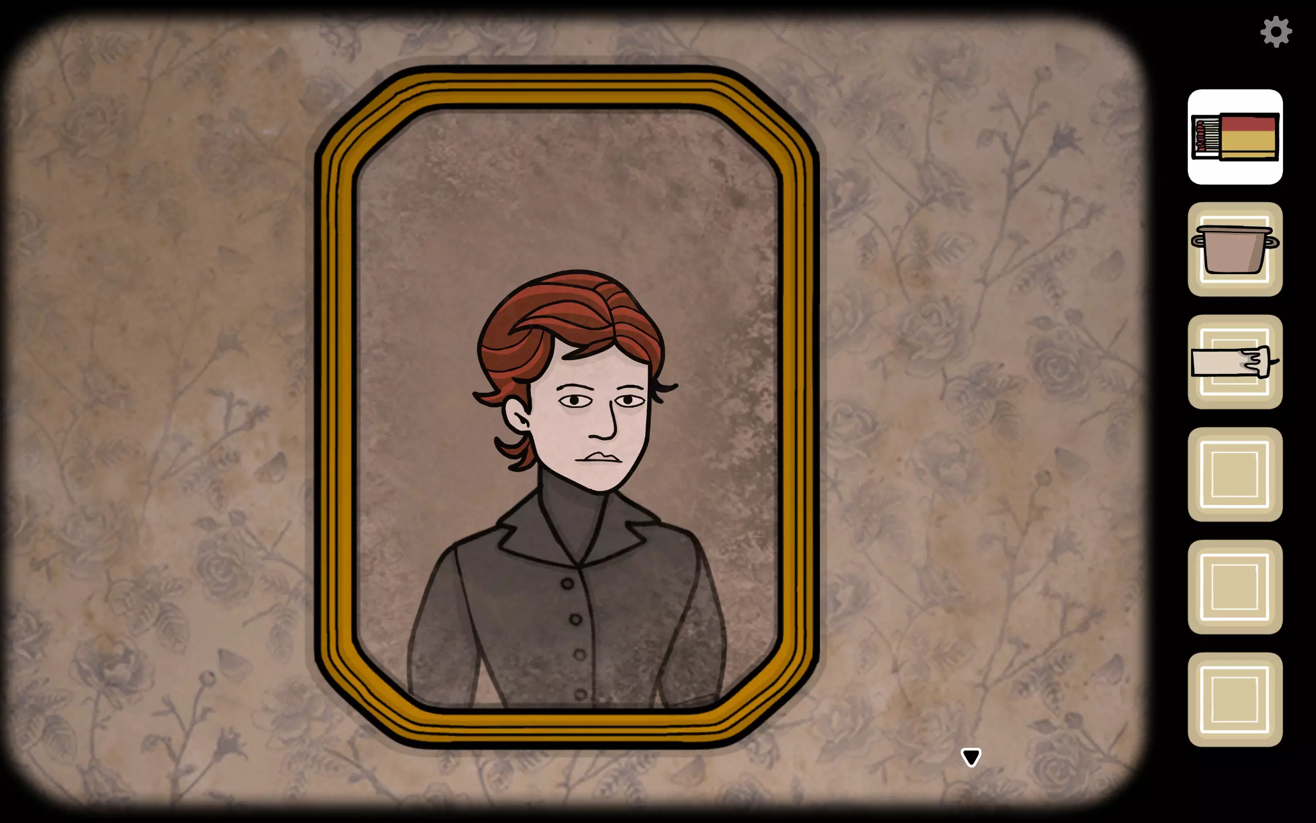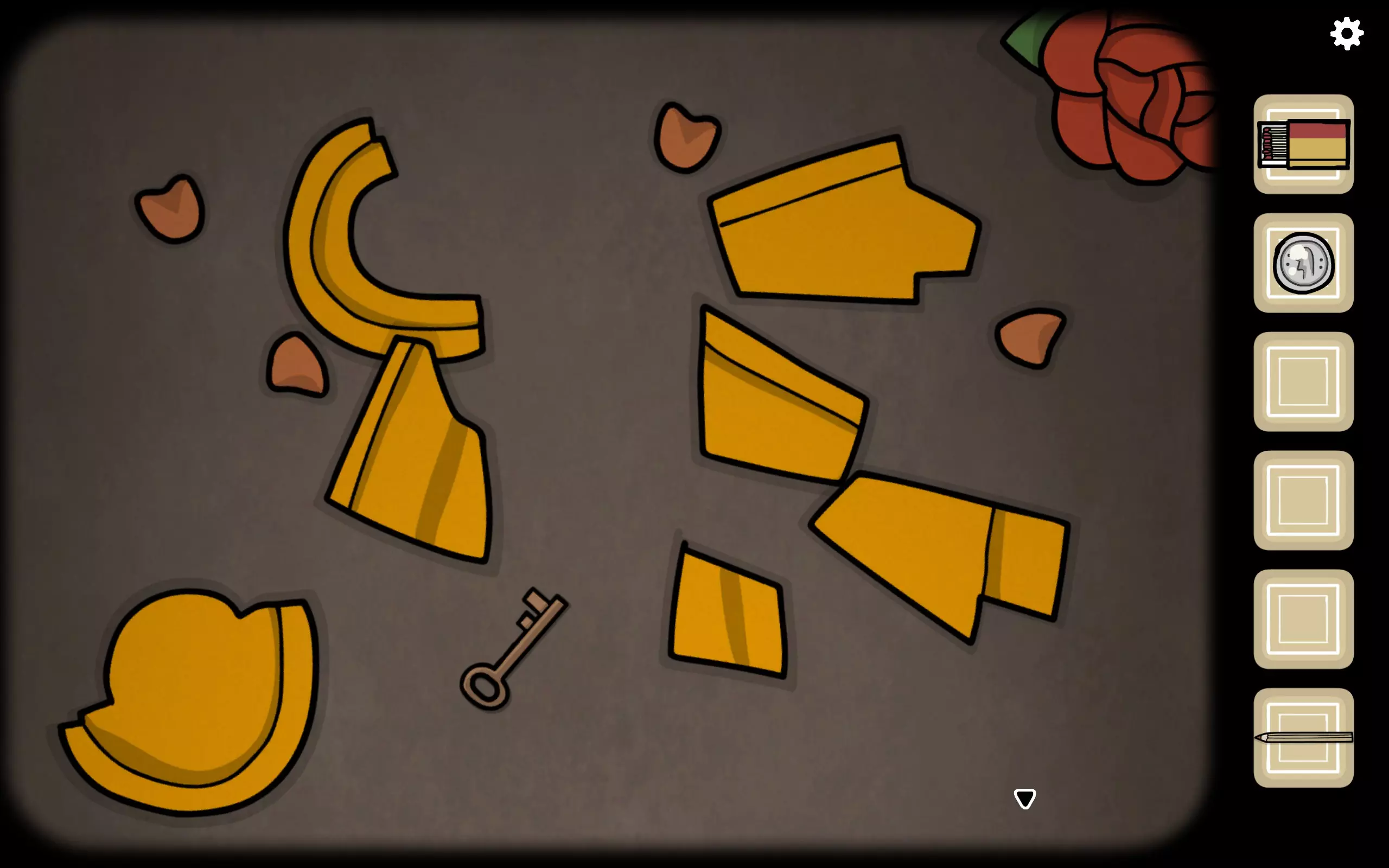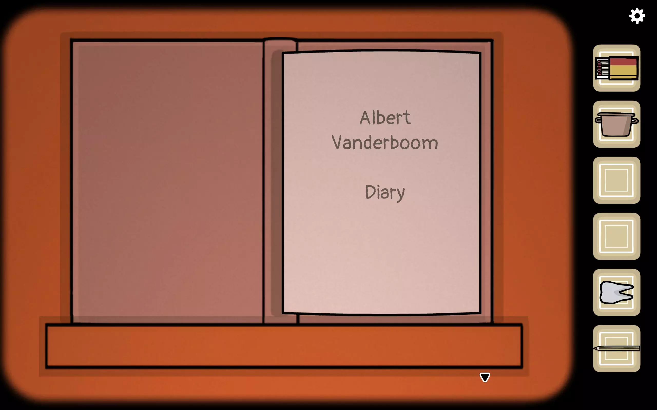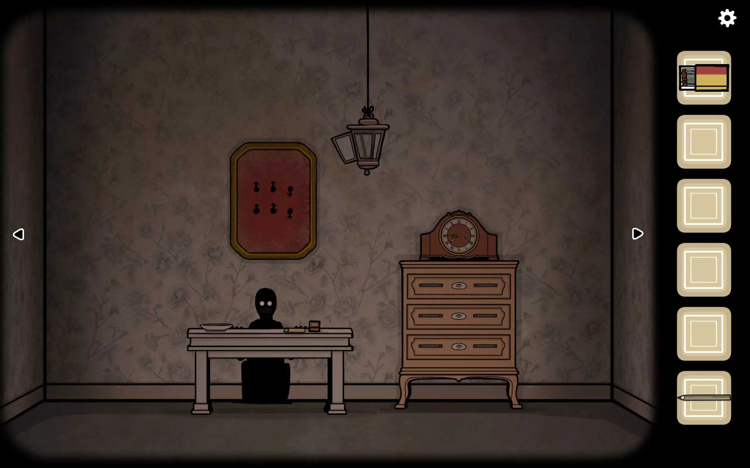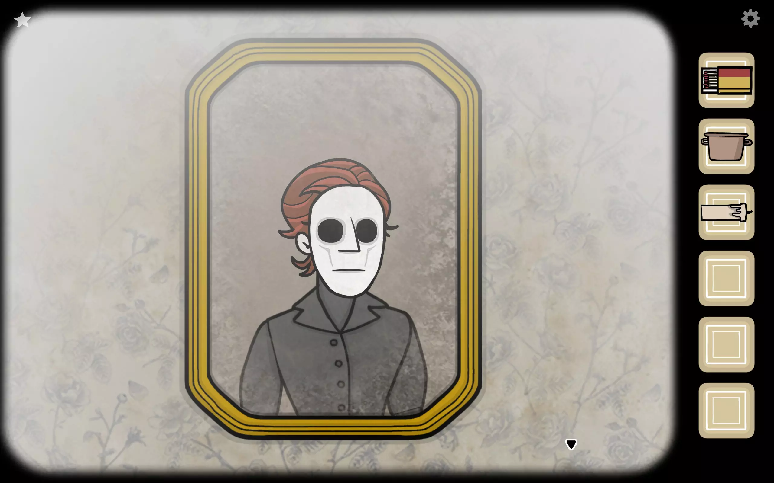 获得一个三角形块,放入之前柜子缺失的三角形槽中,即可打开柜子。三栏分别对应骨(牙齿)、血(鼻血)、肉(耳朵)。右上角可获得铅笔。