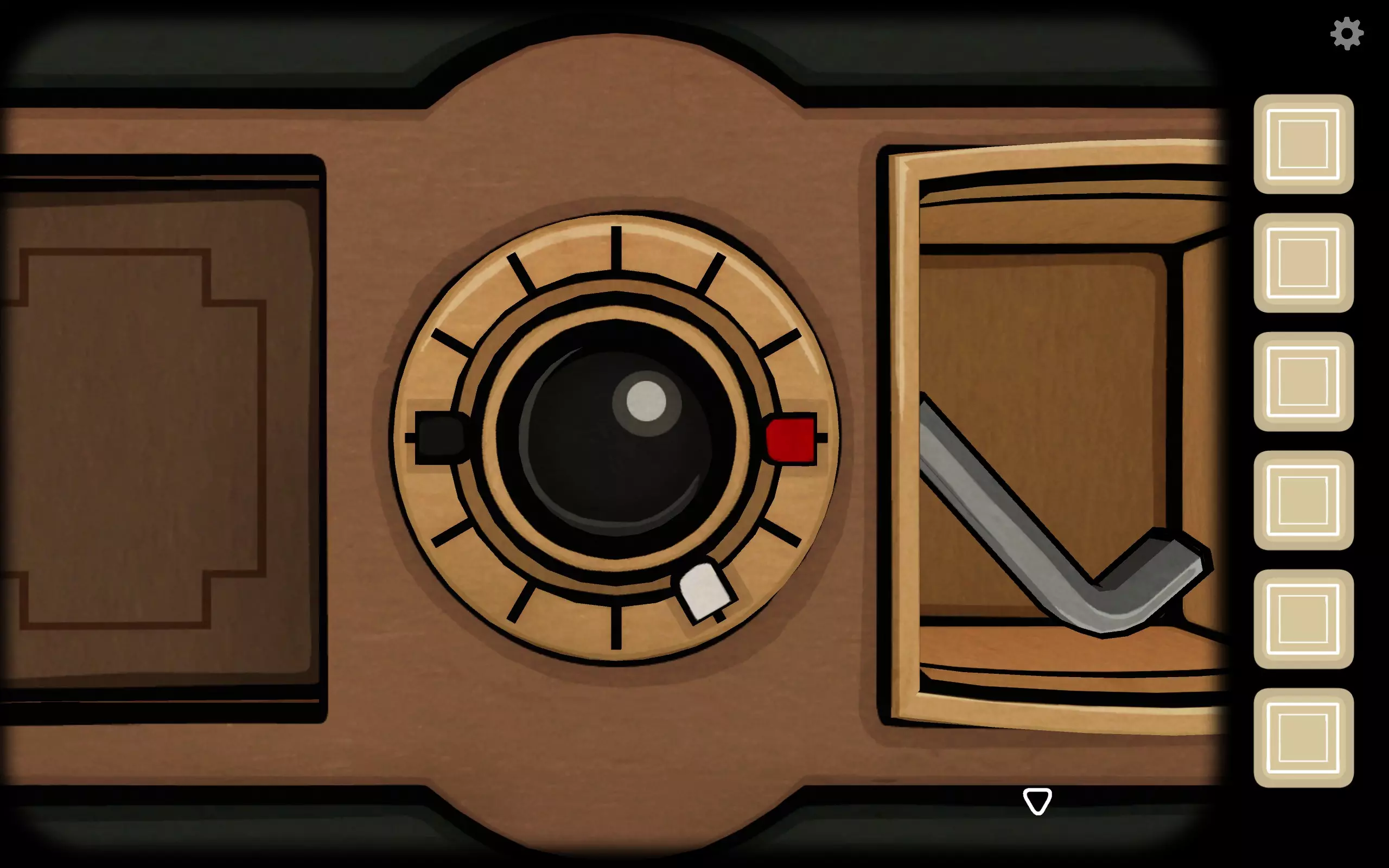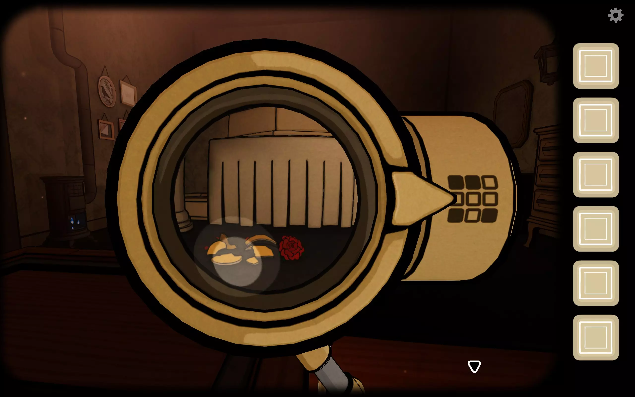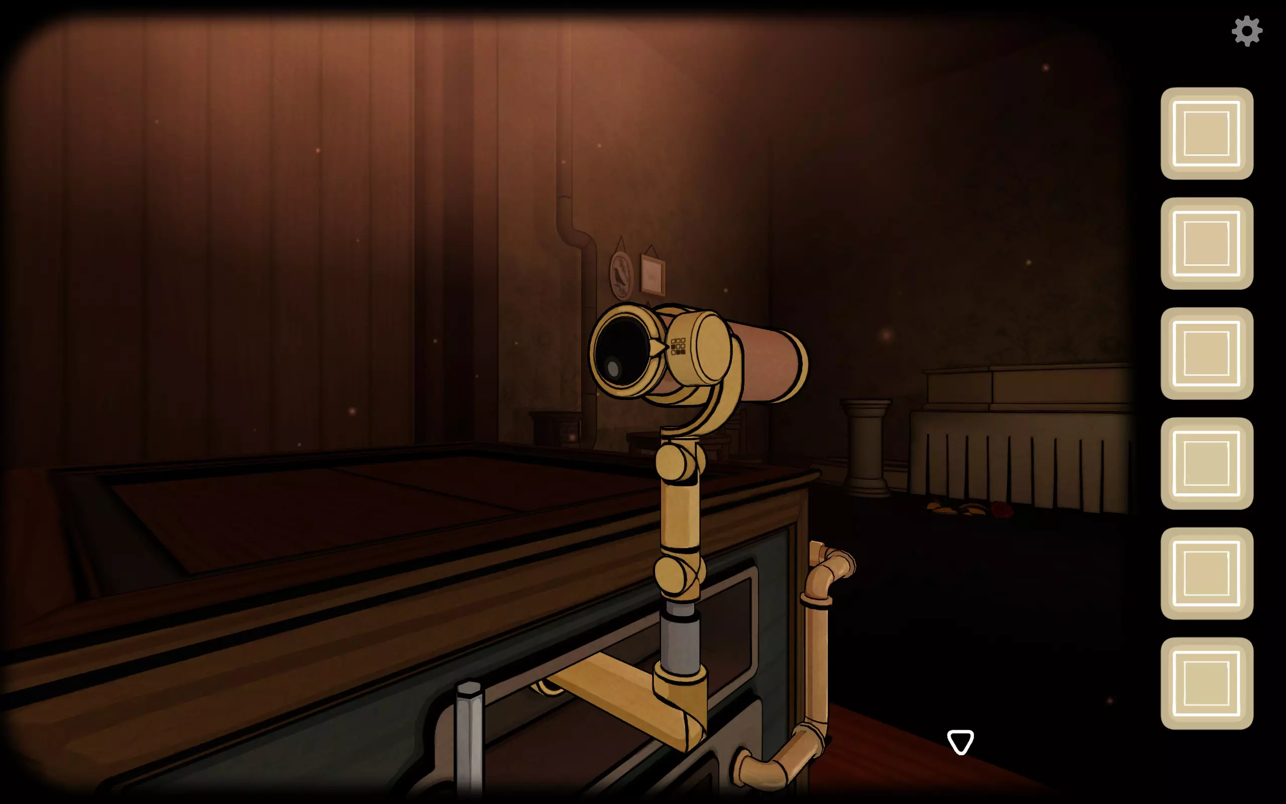 转到箱子左侧上方的六边形小洞,插入曲柄,打开后会出现一个小望远镜。