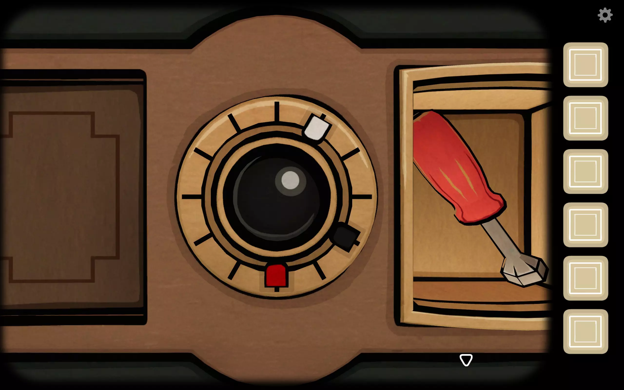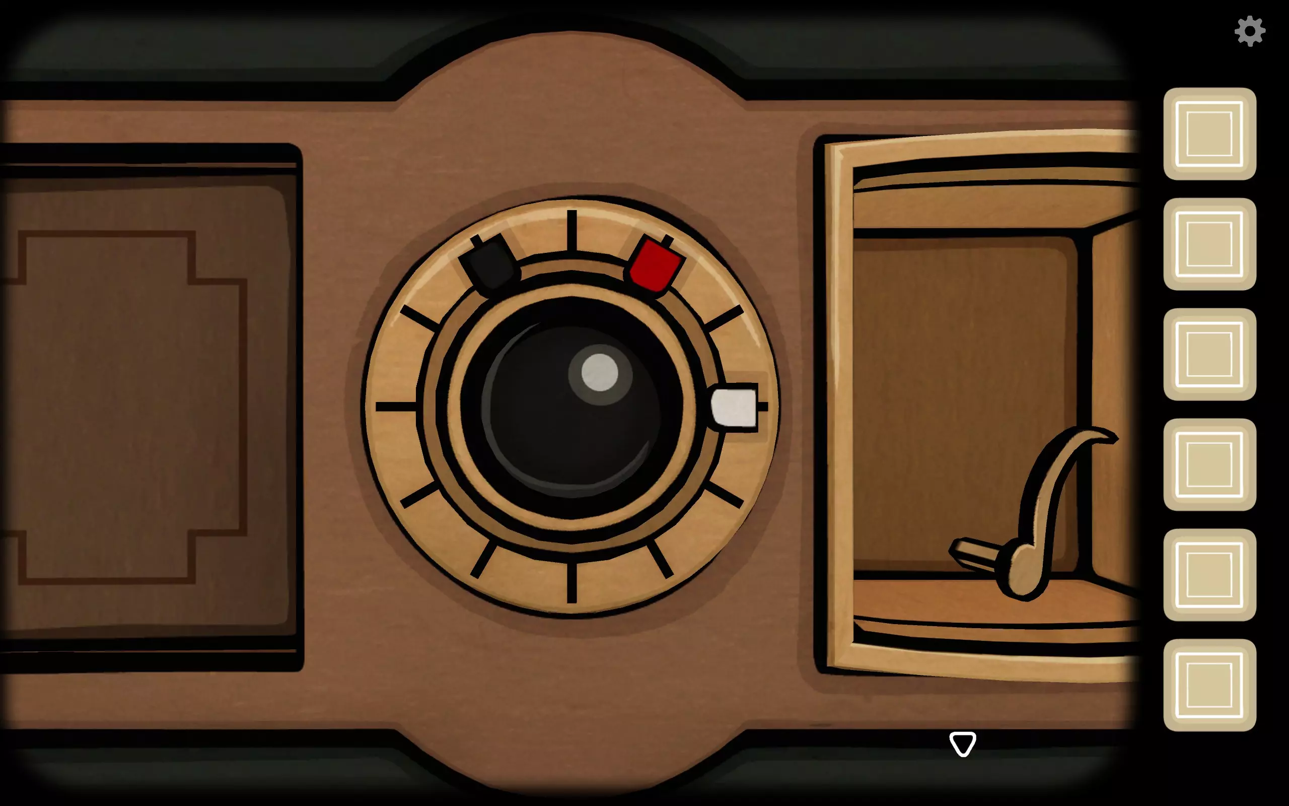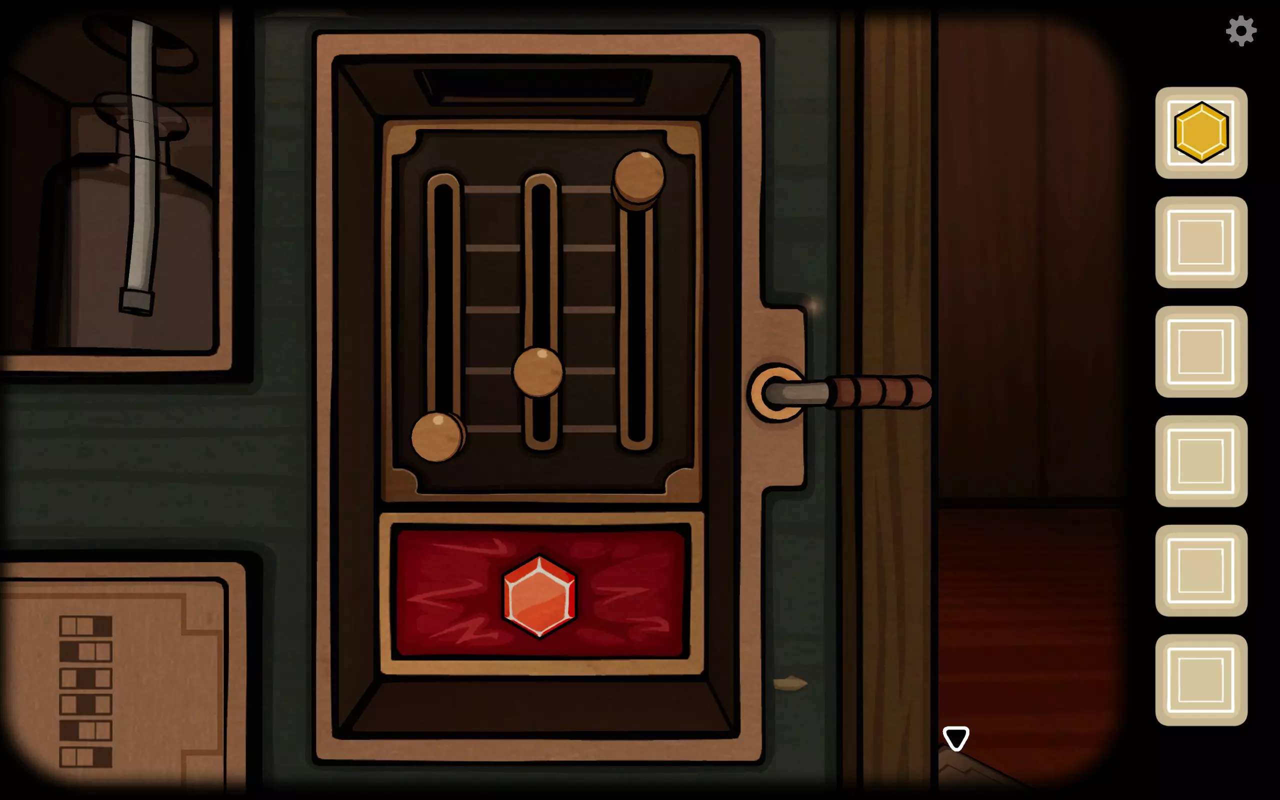 转到箱子左侧上方的六边形小洞,插入曲柄,打开后会出现一个小望远镜。