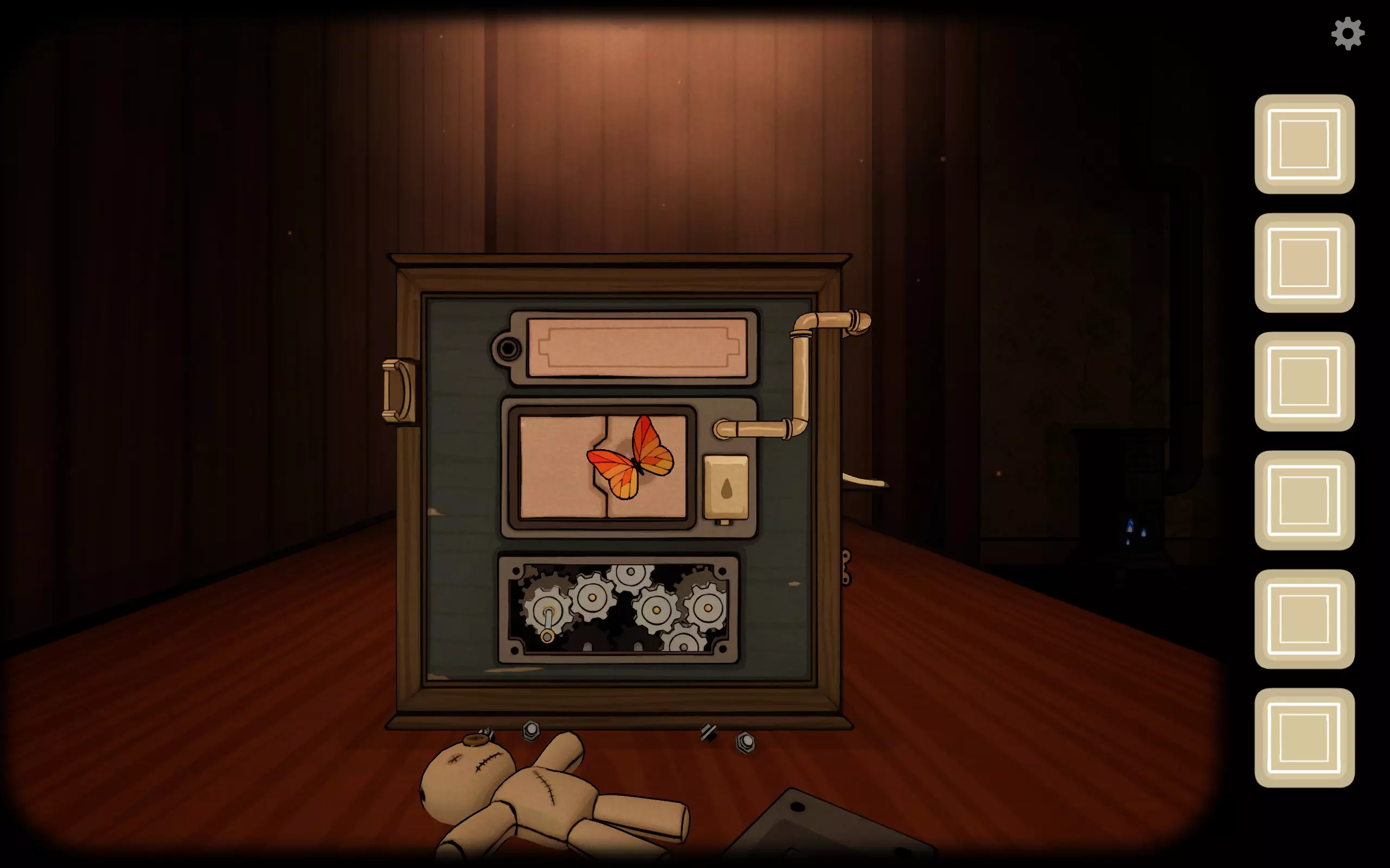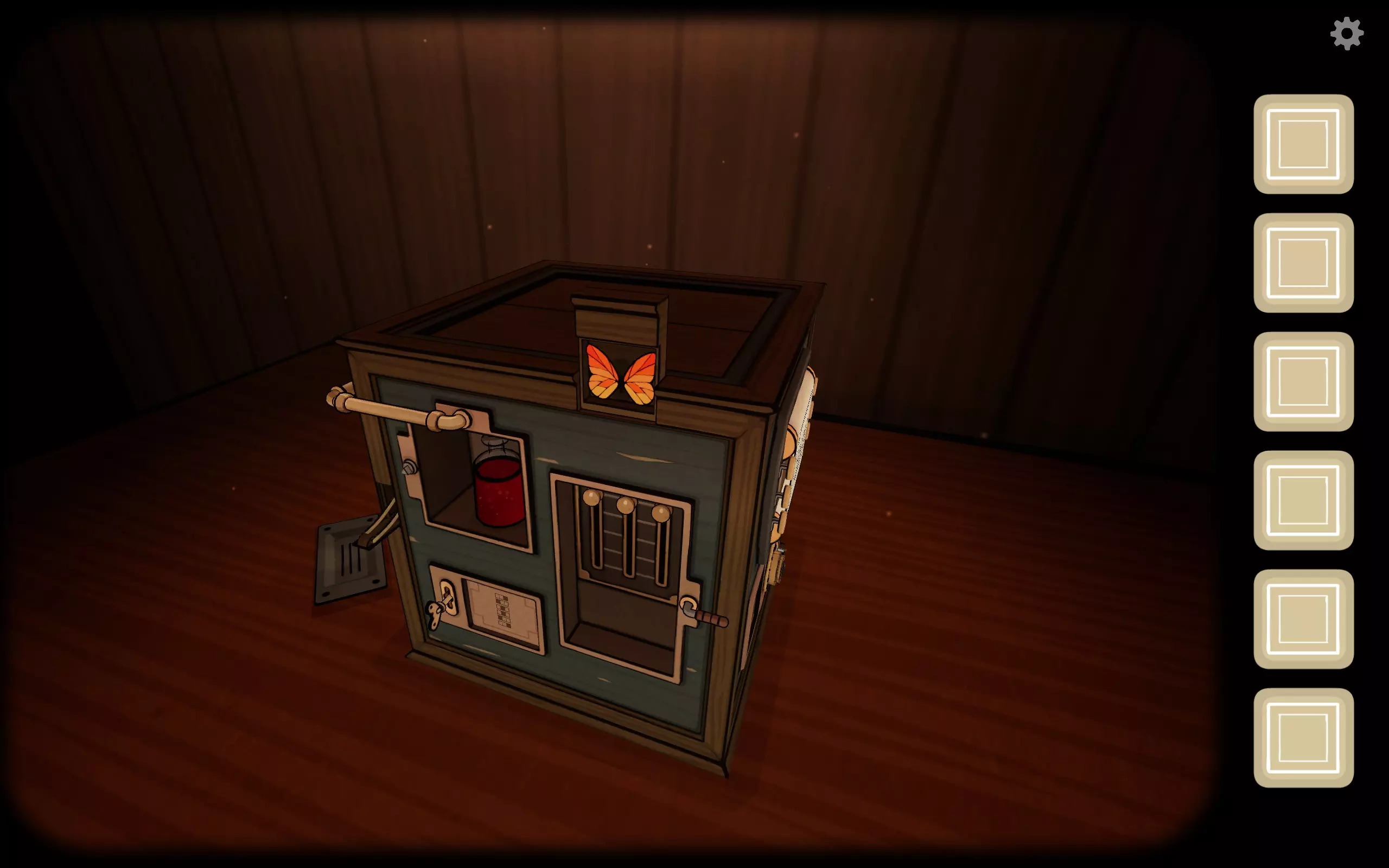 The Past蝴蝶此时飞到了箱子背后,点击蝴蝶,然后放入宝石。你要是没放错的话,获得成就Hidden Treasure,这是过去的第十二个成就。