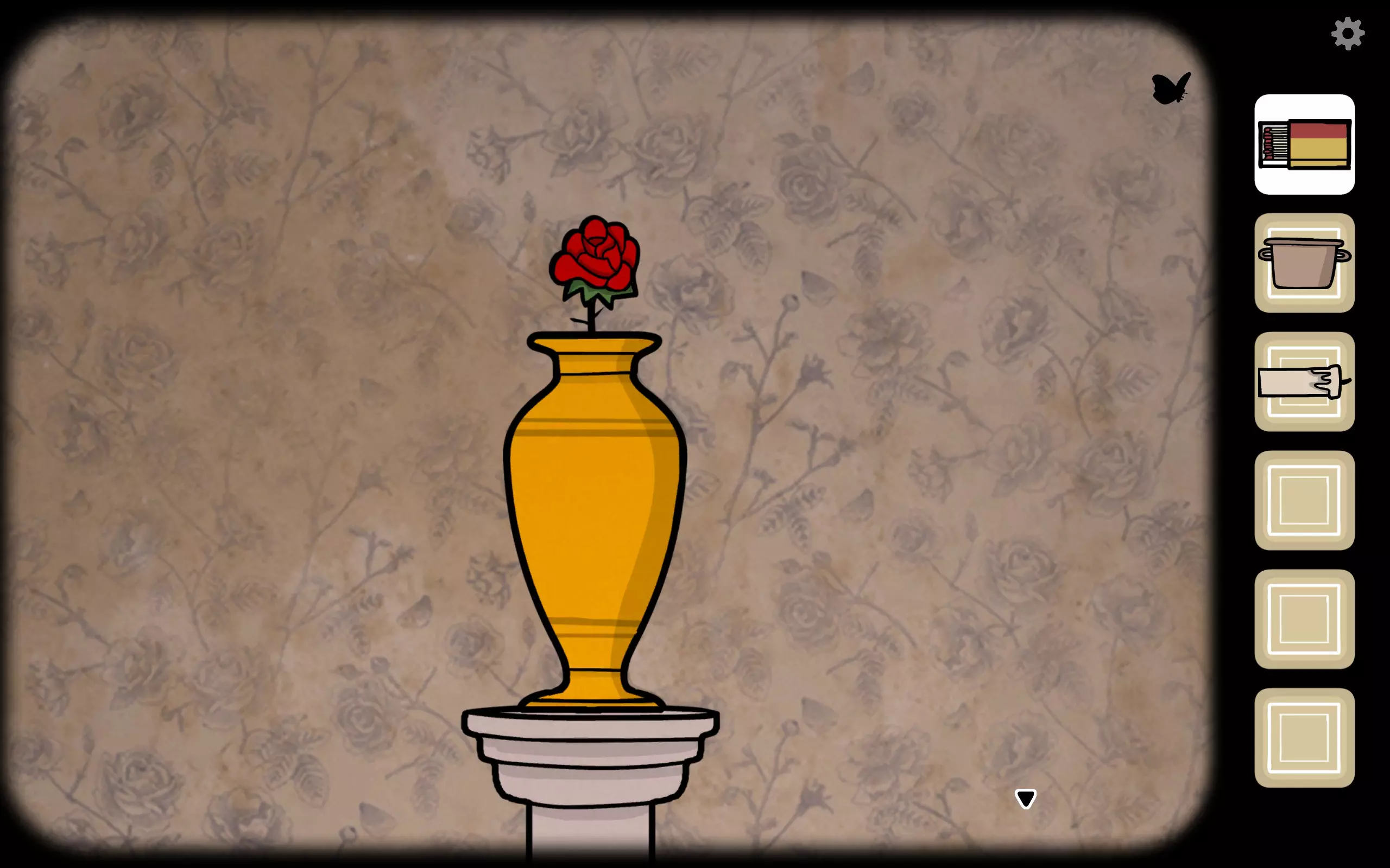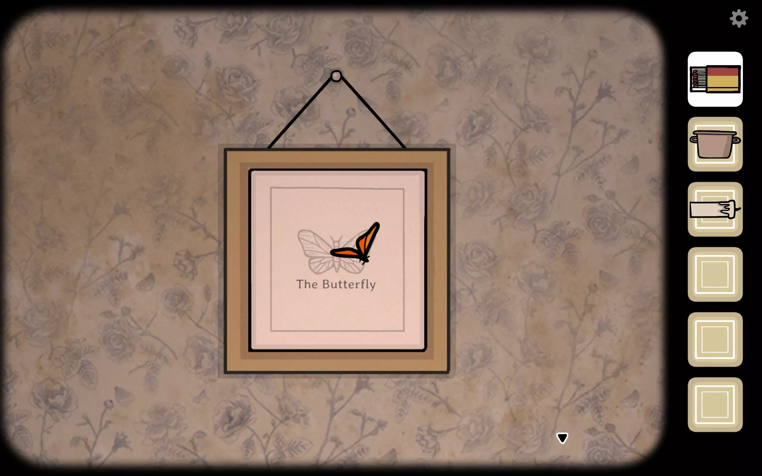 这时如果仔细观察,会发现箱子背后有一只蝴蝶飞过。没错,退出来跟着它,只要它停下来就点击它。