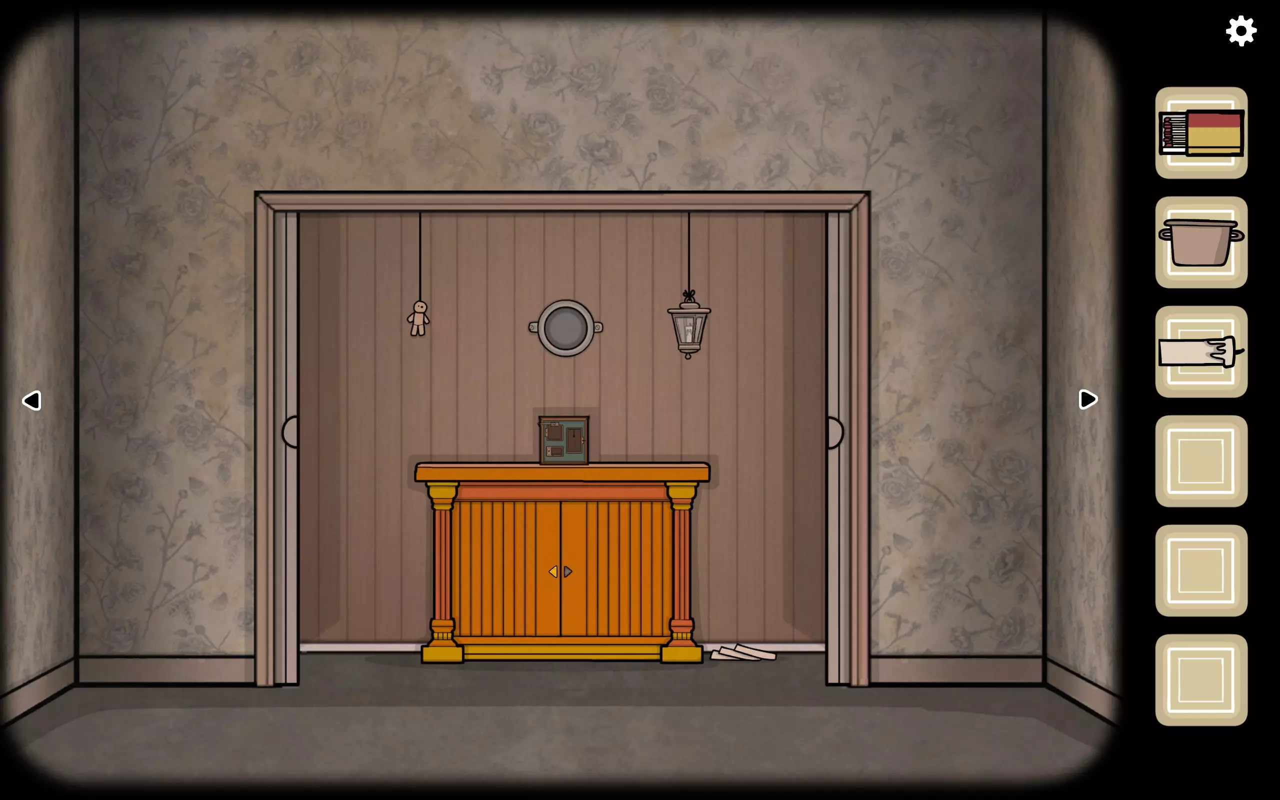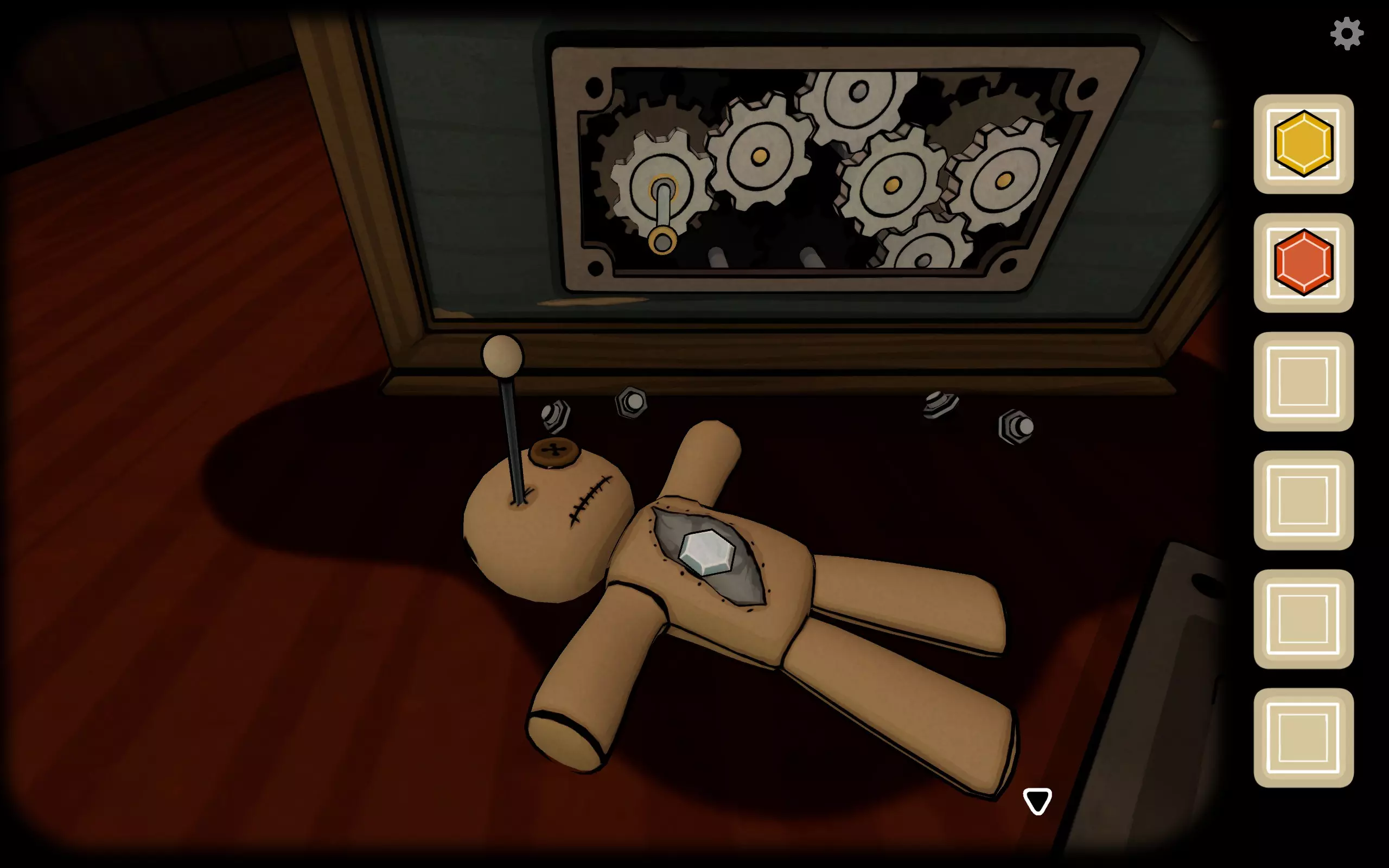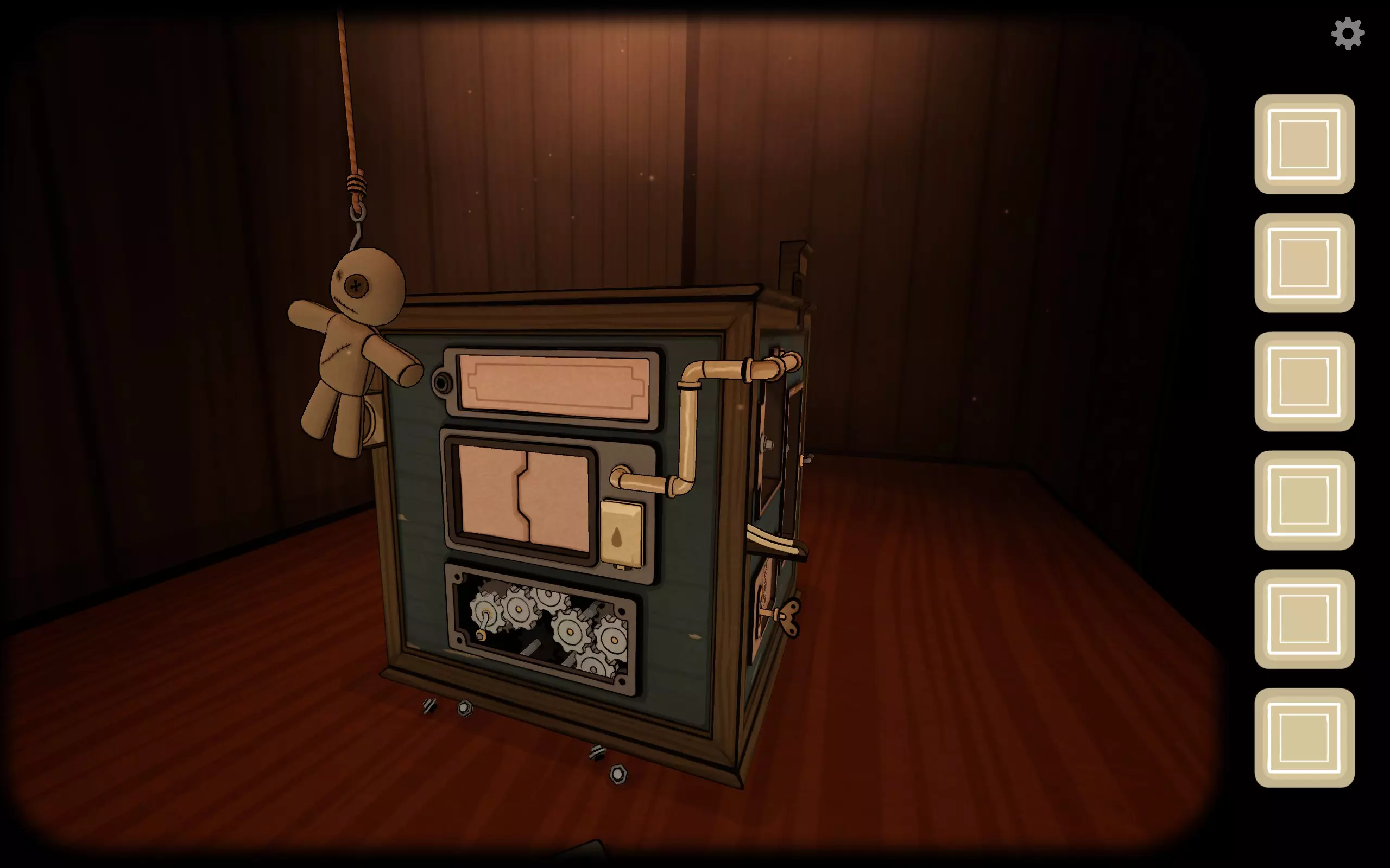 一个巫毒娃娃降了下来,多次点击后它会掉落,同时会松开一个钩子,捡起钩子即可。