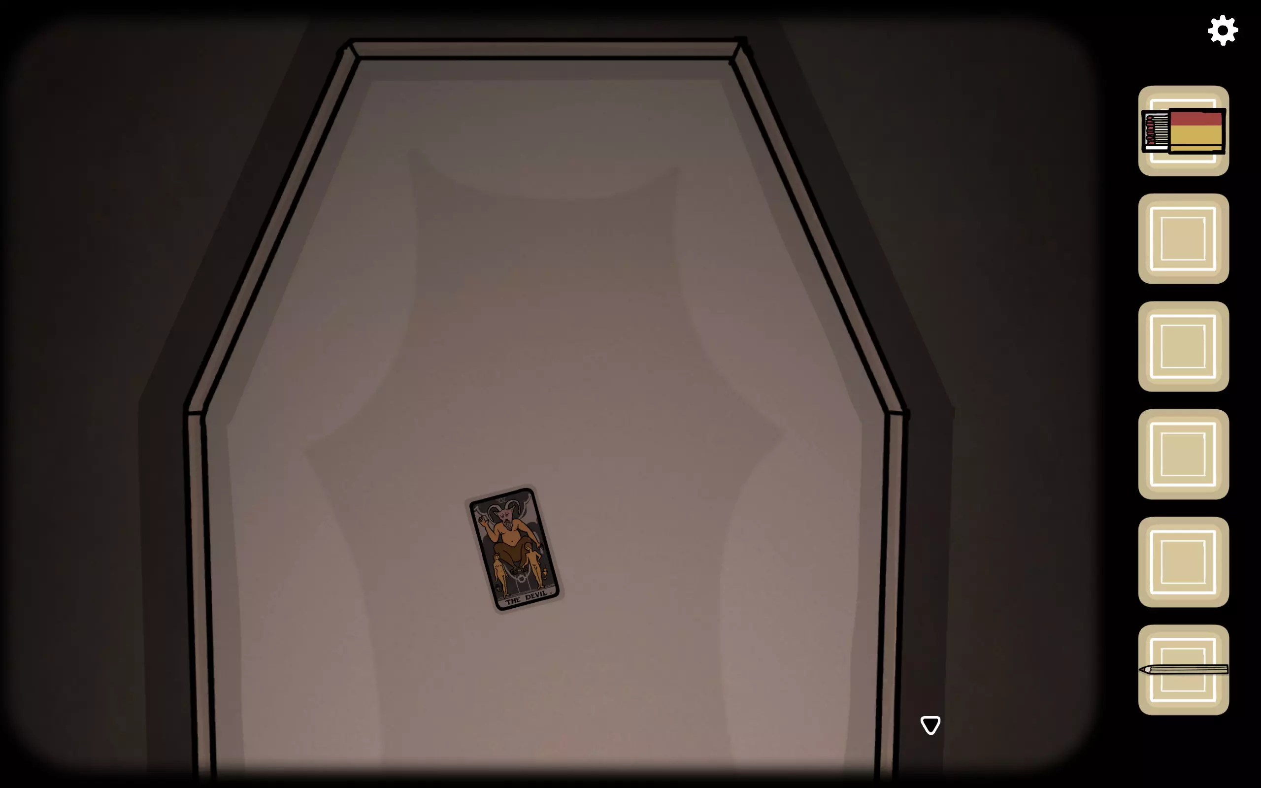退出后,它会爬出来并在地上爬走。此时若查看棺材内部,会发现一张塔罗牌【恶魔】,并解锁成就The Devil(这是过去的第六个成就)。
