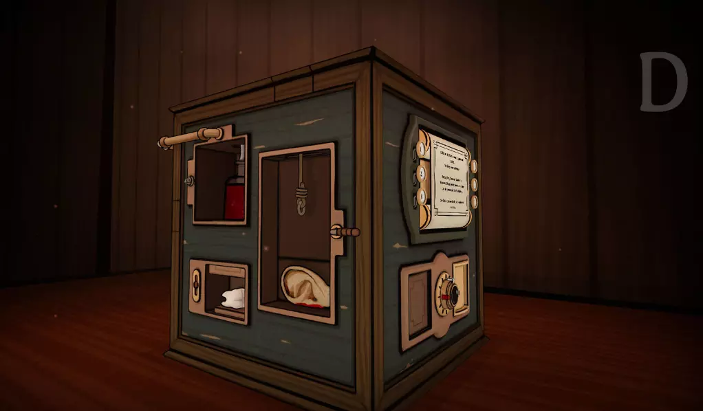 过去与未来:未来方玩家选择耳朵,左侧右上角的幻灯片放映机打开,滑动橙色滑块切换,中间有一张缺漏的幻灯片,需在物品栏中补上。 每张幻灯片左上角有四个方格,其中会有一个被填满;过去方则在每篇日记左侧的四个方格上涂黑对应的方格。 过去方的日记(对应未来方的幻灯片)内容如下: - 抓了只蝴蝶却被妹妹偷走(幻灯片为Albert和妹妹的合影,手里拿着蝴蝶) - Ida离我而去(幻灯片为Ida的照片) - 人生成就:养育了女儿Rose(幻灯片为Albert抱着婴儿) - 研究某个立方体设备(幻灯片为Albert拧螺丝制造立方体) - 只要输了棋,我就会消失(幻灯片为Albert下国际象棋) - 黑暗灵魂活到未来等待复活(幻灯片为经典小黑人形象) 完成上述操作后,下方柜子会打开并获得刀,过去方可以去割下Albert的左耳。你也要割耳朵吗?