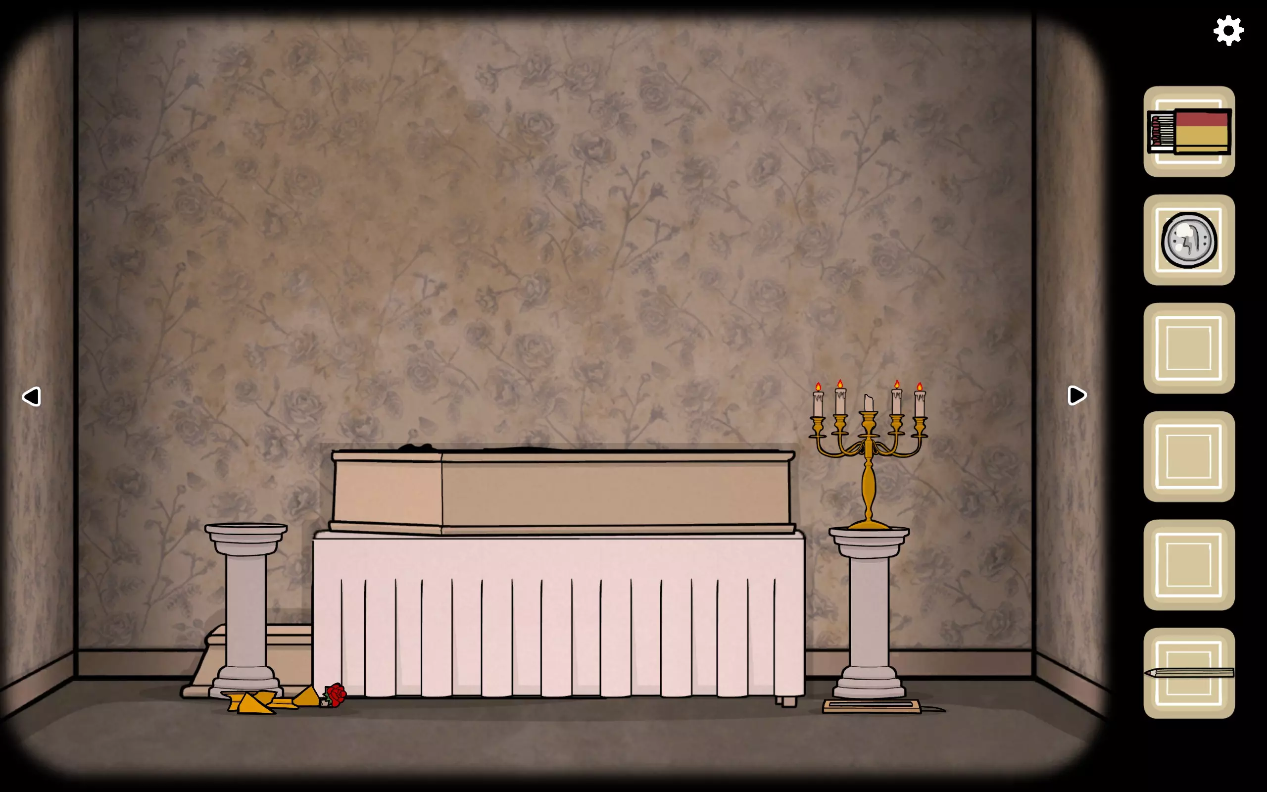 然后向右转回到阿尔伯特的棺材这边,点击花瓶里的花,一只黑色的蝴蝶会飞走。