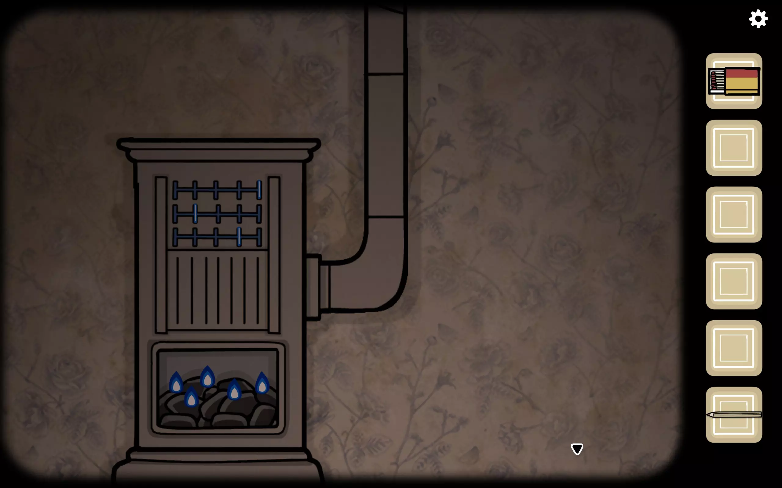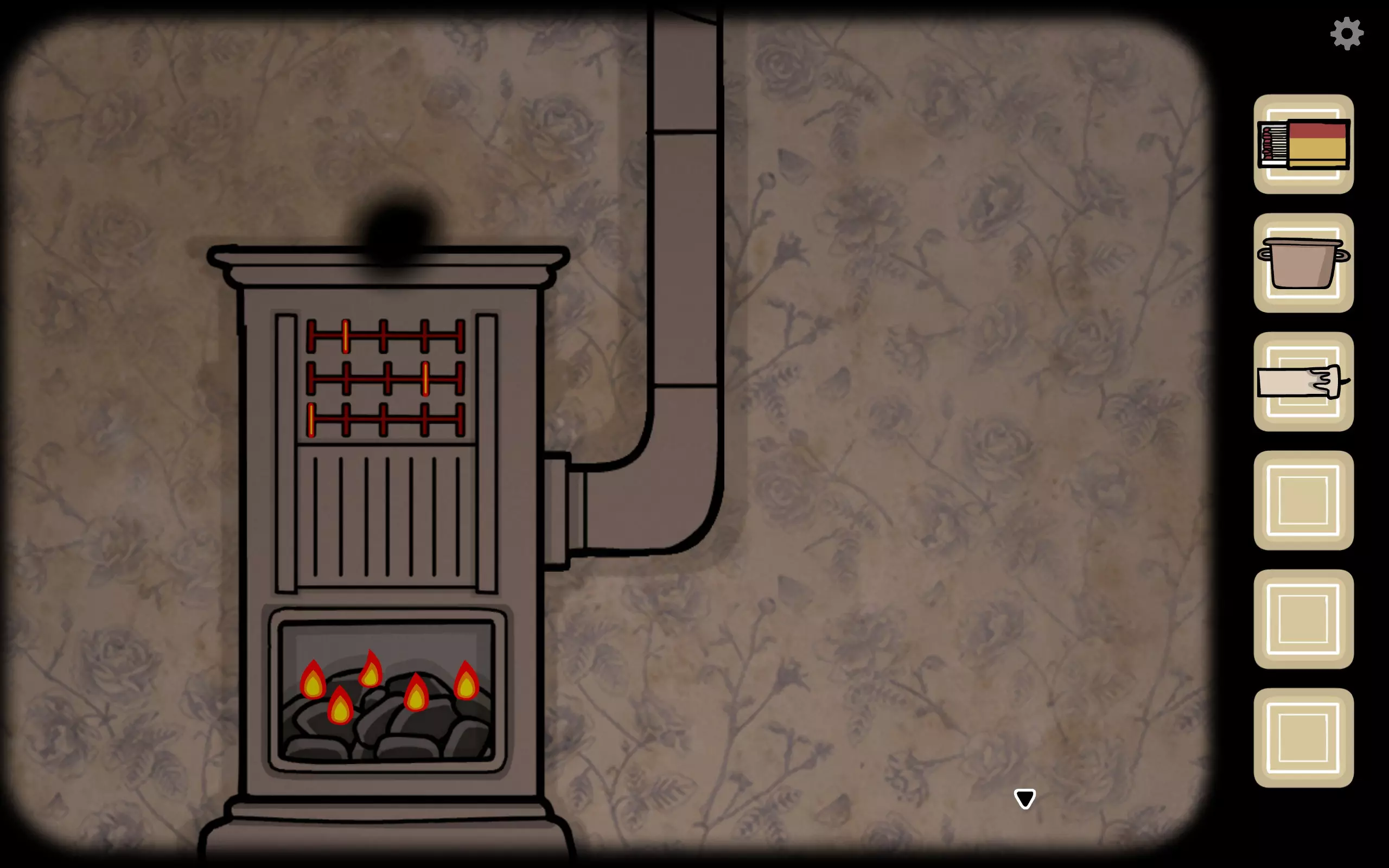 退出,左侧煤炉添加煤炭,用火柴点燃,出现三个进度条,每个进度条上有亮起的区域。