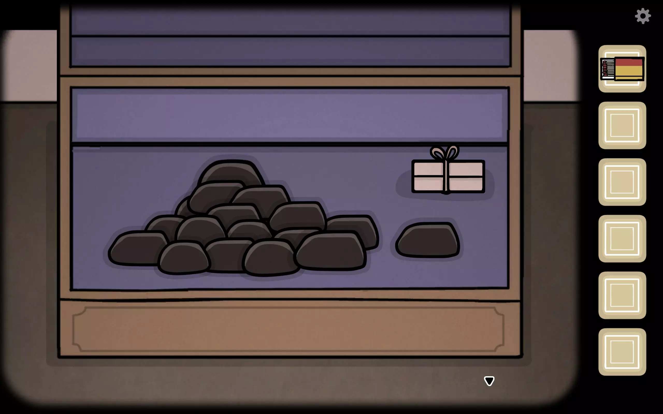 根据上文所述,点击图标更改,然后会得到四个标识。 退出后发现有一个白老鼠(点一下)。 回到四张照片的一面,右下角箱子输入四个标识后打开箱子,获得煤块。