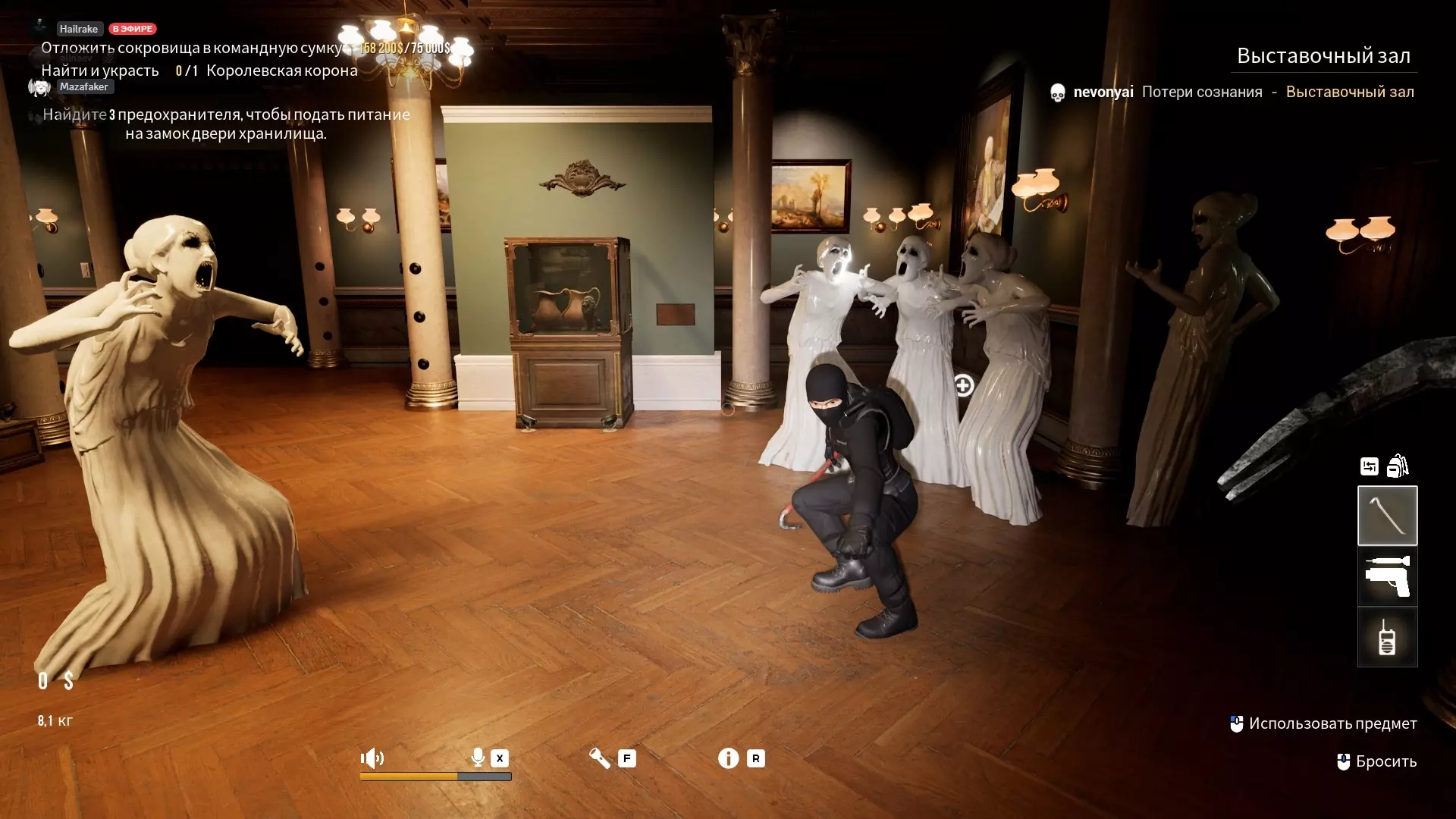 如果你的队友像个捣蛋鬼一样拿起相机走开了,你最好待在光线充足的房间里。 哭泣天使 这就很容易理解了,只要别把视线从它们身上移开就行。随着游戏的推进,会生成更多哭泣天使,而且雕像的数量也会随着玩家人数的增加而增多。要小心,如果你撞到它的碰撞箱,即使它正看着你,也可能会杀死你。此外,它们还能穿过门。如果你能设法把所有雕像都集中起来,只让一名玩家盯着它们,那事情就会变得非常简单。