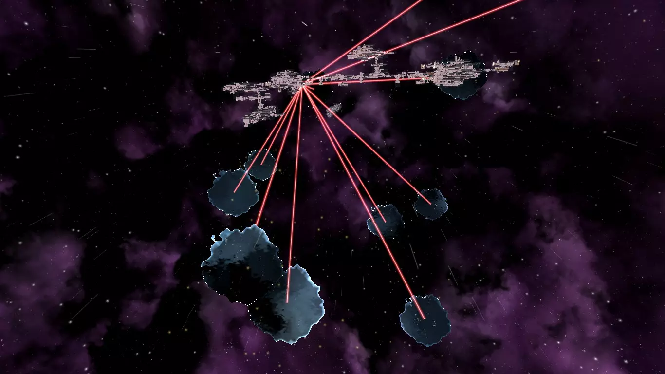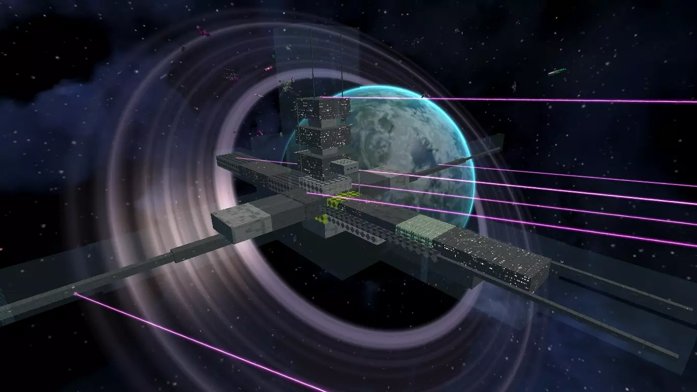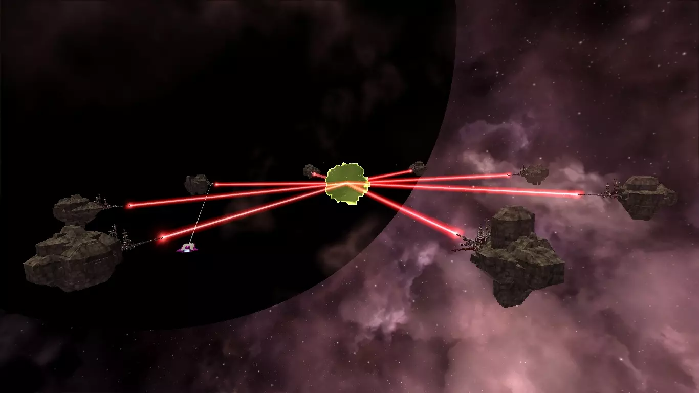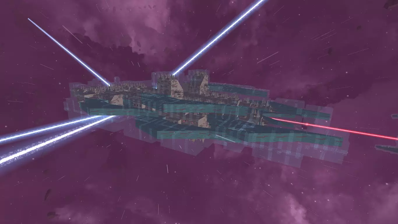【死亡射线】有3个阶段:1.红色射线 - 引导;2.绿色(这真的是绿色吗?)射线 - 充能,持续1秒;3.蓝色(或者青色?这破配色xd)射线 - 全宇宙毁灭之力!就是这样,你驾驶着小型飞船,不是无人机,无人机没用。你用激光瞄准小行星,还要躲避死亡射线。摧毁小行星后,继续进行机动,然后呼叫伙伴,他们会把小行星分解成小块。最好是对船体有伤害的武器,因为目标很大。专业级(5公里),可能还有别的,但不太可能。1-2个蓝色物品,1-3个橙色物品,49-51级,位置在中心附近。