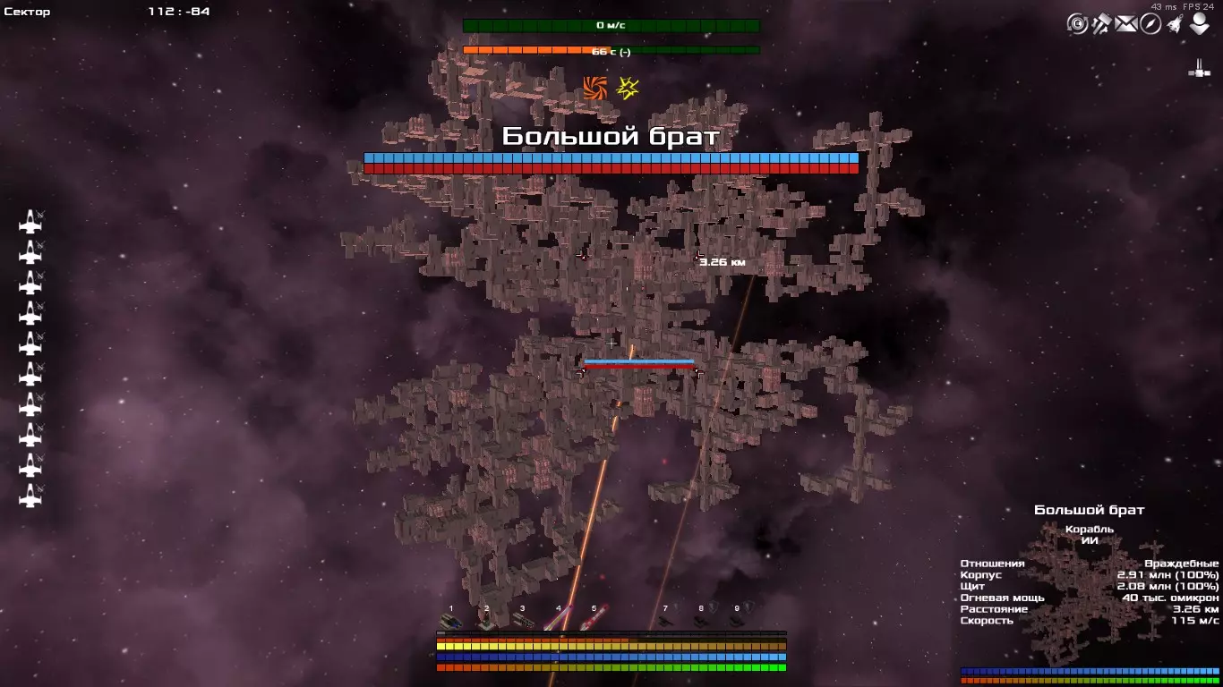 бLять ↑↑CAUTION! UNDER CONSTRUCTION!↑↑ 5468 6520 4149 вызывалка падает с центрального босса чё там дальше, боюсь проверять, лол но потом проверил, и оказалось, что из каждого уничтоженного из его наиболее вкусных блоков вылетает по несколько торпед, и еще он больно кусается, а мочить его заипешься... без хороших щитов и защиты от плазмы и торпед, рядом с ним находиться просто... FATALITY! K.O. К слову, выглядит, как Большой Брат, только в несколько десятков раз больше и по корпусу, и по щитам. Одним словом - ЖИРНАЯ _ОПА. Фишки от ЛС'а. Возможно, это будет полезно тем, кто давно не заходил в игру, поскольку c момента первого выпуска игры в Steam появилось немало фокусов и возможностей. Для кого-это уже будет лютым баяном, но надеюсь остальным будет полезно. У вас теперь есть возможность стащить все добывающие астероиды в один сектор! Просто подлетите к нему, пристыковывайтесь, затем дайте кораблю команду прыгнуть в целевой сектор и упрыгайте оттуда сами. То-же самое и со станциями. Теперь можно создавать цепочки производств без истребителей, просто пристыковав станции друг к другу, через режим трансопрта, активировав его на необходимых заводах и подтащив одну из них поближе к стыковочному доку. Заметьте, что переброска требуемых ресурсов ЧЕРЕЗ станцию, невозможен, только напрямую. (типа пример: продукт1-запрос2 +, продукт1-3-запрос2 -) (Хинт частично устарел) При создании цепочек производств, если вы используете стыковку, обращайте внимание, каких ресурсов будет требоваться больше всего, и наиболее востребованные ресурсы присоединяйте напрямую. Всё остальное можно доставлять истребителями, желательно иметь близкое расположение станций. (Хинт устарел) Станции используют около полутора эскадрилий для транспортировки. Остальные простаивают. То-бишь, [при расположении станций на расстоянии около 4км, станция будет пускать один истребитель раз в 1-1.2 сек, причём кол-во ангаров не влияет на скорость выпуска и очерёдность истребителей]. Поэтому лучшими статами для грузовых истр-лей будет размер 8 и максимальная скорость. К уже присоединённым дочерним станциям нельзя присоединить другие станции. Всё, что стыкуется к материнской станции и имеет собственные дочерние станции, также нельзя пристыковать. Эффективность рудных и утилизационных лазеров показывает, какой процент металла руды вы получите с конкретного объекта. К примеру, с астероида на 50к(тысяч), при эфф. 60 (груборудный), вы получите 30К руды, а с куска корпуса, на 1000 триния, при эфф. 15 (обычный утиль), вы получите всего 150 металла. (ну а вдруг кто то не знал) Генераторы и гиперядра можно строить только если в секторе присутствует верфь. Глушитель сигнатур надёжно защищает и от ксотан, и от пиратов одинаково. Однако, AFK-пираты все равно продолжат вас терроризировать, где бы вы ни находились, пусть и появляются они нечасто. (Хинт устарел) Шаттлы перевозят больше груза, чем больше их размер. При постройке станции, есть возможность использовать шаблон той фракции, у которой был куплен корабль, либо ближайшей к вам фракции. Поля контейнеров восстанавливаются, как и враги. Любая выпавшая 6-слотовая пушка в районе поясов огонита и авориона имеет 25%-ный шанс стать соосной. Горячие клавиши в инвентаре: для Избранного - "F", а для Мусора - "T". Выделяете предмет, любой, и жмете соответствующую клавишу. Чтобы снять маркер, выделяете и нажимает