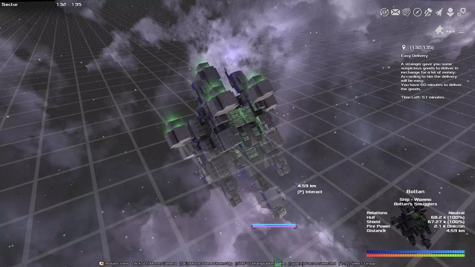 走私者博坦 船体:约60,000 - 105,000 护盾:0 - 82,000 欧米茄值:约2100(同样取决于与中心的距离) 武器:激光(4公里)100% 速度:有时会超过2800米/秒,加速度取决于生成情况,但通常为中等 作为敌人,它相当弱小,因为博坦总是指望不与敌人发生接触。如果你足够强力,甚至可以在不获取博坦的超光速引擎过载子系统的情况下将其秒杀。不过在这里我会描述一场标准的战斗,毕竟您现在还不是一个庞大的阿沃里乌姆(avorium)大头。 该区域只有一个 boss,没有支援,武器只有激光。它的强度和掉落物取决于您接到货运任务的地点。机体是纳奥尼特-特里尼(naonit-trinny)。照片里是来自克萨尼(ksanev)星域的博坦(battan),但看起来好像是从纳奥尼特(naonit)来的,具体目的你们懂的。战术: 无需进行任何超自然操作,只需在船上尽可能多地安装自动炮,并且首先用等离子炮或激光炮(或者等离子激光炮,天啊……)摧毁其护盾。你的船只接近【屏障】的最低属性要求:总强度不低于80-100k,欧米茄值要能在一两分钟内击败它,而且逃跑时绝对不能像懦夫一样。对于更远的区域,相应地,所需的东西会更少,但还是得学会跑。 另外,摔倒的样子也很精彩,就像橄榄球里瘦骨嶙峋的小耗子打滚一样。让我再把这点写进去。