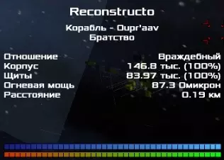 护盾:120 - 150k 船体:240 - 403k 奥米克戎:240 - 660单位 武器:机枪(9公里)约40% 激光(5公里)约60% 速度:约200 - 3010米/秒 天然坦克,没有影响力。可能完全没有护盾就生成。 重构体