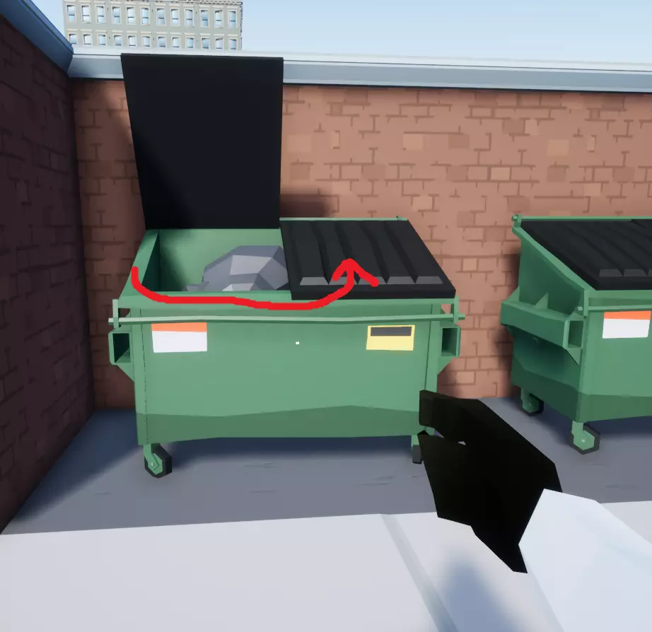然后你需要跳起来,在半空中对着打开的垃圾桶盖子蹲下。当你在盖子和墙壁之间悬停时,快速连续按跳跃键,当角色跳起后,朝着盖子顶部移动并蹲下,这样就能成功站上盖子顶部。
