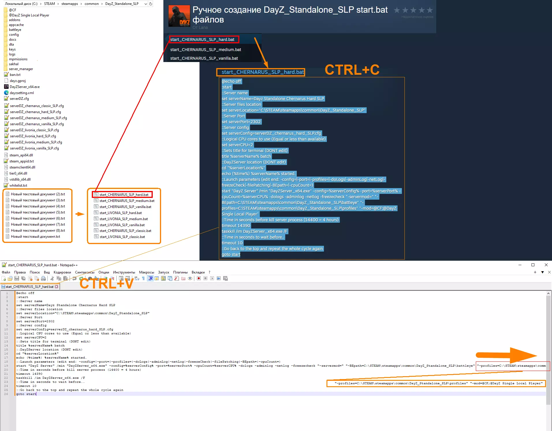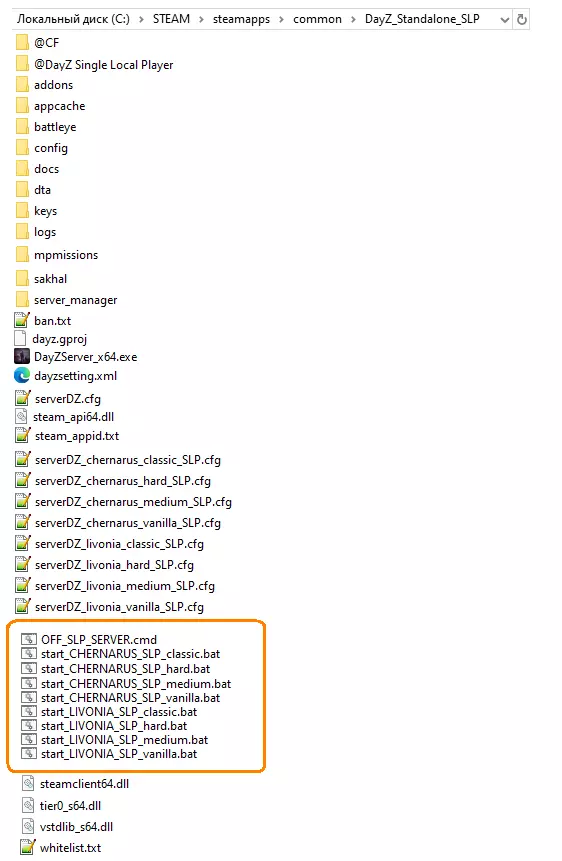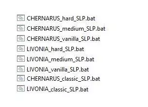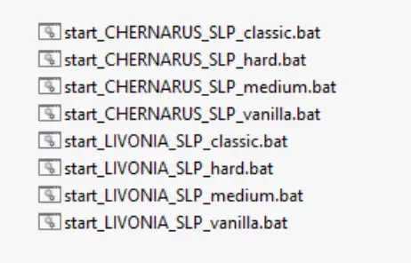 如果路径如下: C: Steam steamapps common DayZ_Standalone_SLP 无需其他操作,只需将您的start.bat重命名,例如: startCHERNARUS_hard.bat start_CHERNO_hard.bat CHERN_H.bat SLP-CHERN-HARD.bat 等等。 例如: