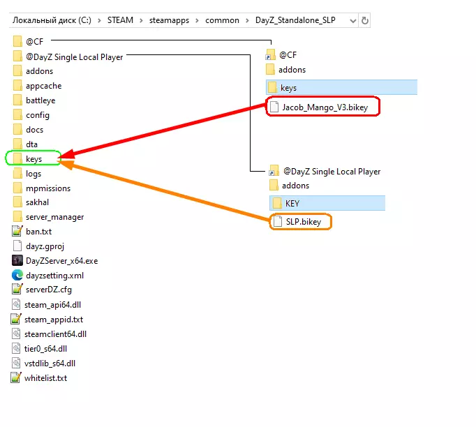 .bikey文件为了让我们的DayZ独立版SLP服务器能够运行这些模组并让游戏正确加载它们,需要从模组文件夹中提取.bikey格式的密钥文件。所需文件位于keys文件夹中。请对@CF模组执行以下操作,并对@DayZ Single Local Player模组执行相同操作:从内部文件夹中复制.bikey密钥文件。@CF模组的密钥路径为keys文件夹,@DayZ Single Local Player模组的密钥路径为KEY文件夹。然后将这些密钥文件移动到服务器的keys文件夹中。这样,在运行start.bat启动服务器时,服务器就能通过密钥文件进行验证。无法识别或无法翻译,已删除。