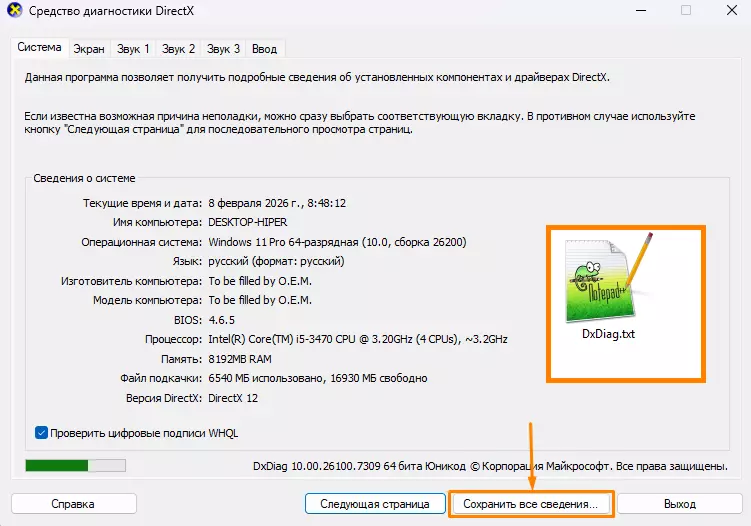 在输入框中输入【dxdiag】并保存生成文本文件DxDiag.txt