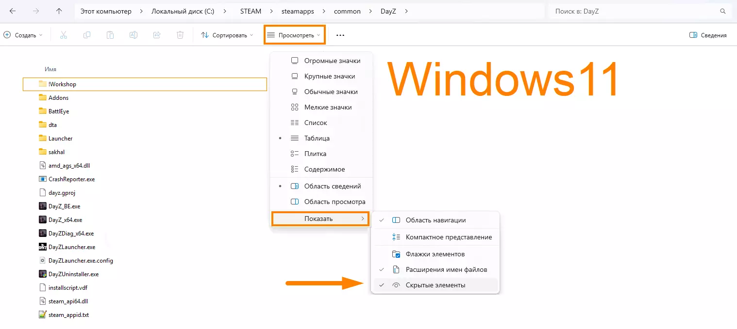 如果看不到!Workshop文件夹,请开启“隐藏文件夹”或“隐藏项目”