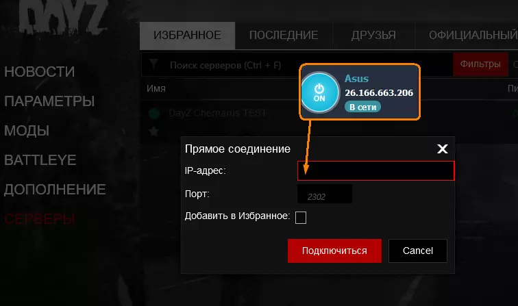 这个来自Radmin vpn的IP将由你和你的朋友在DayZ的【标准启动器】中使用【直接连接】+端口:____。理论上,如果不进行任何额外设置,这是一次性的。至少我曾设置过一次,将服务器添加到【收藏夹】后就再也没有管过,甚至在开始写指南之前都没再想起过。
