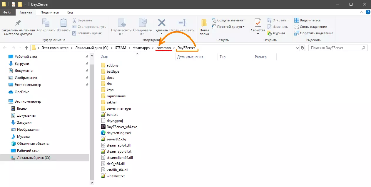 之后我们进入包含所有服务器文件的本地文件夹【DayZServer】。我们将对该文件夹进行操作。若要复制服务器并基于原始文件创建“自己的服务器”,请返回【common】文件夹。