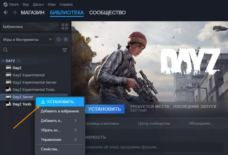 DayZ Server 将出现在库中 选择 ==>> DayZ Server ==>> 安装