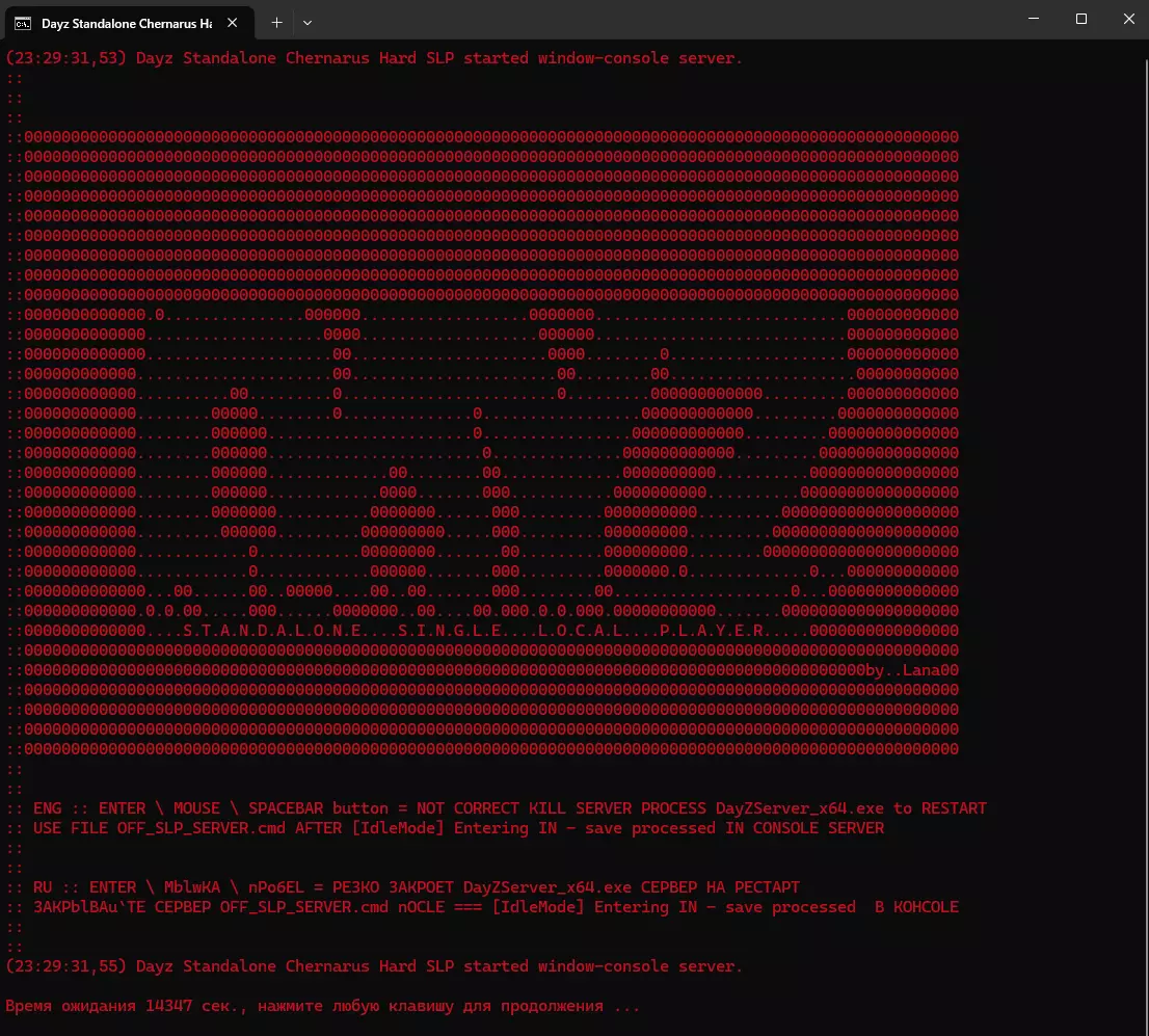 通过【IdleMode】进入IN - 已处理存档 - 服务器应同步所有脚本并让玩家退出网络。如果不这样做,可能会有丢失战利品、“回档”以及服务器出现错误的风险。【7】通过OFF.cmd文件关闭服务器