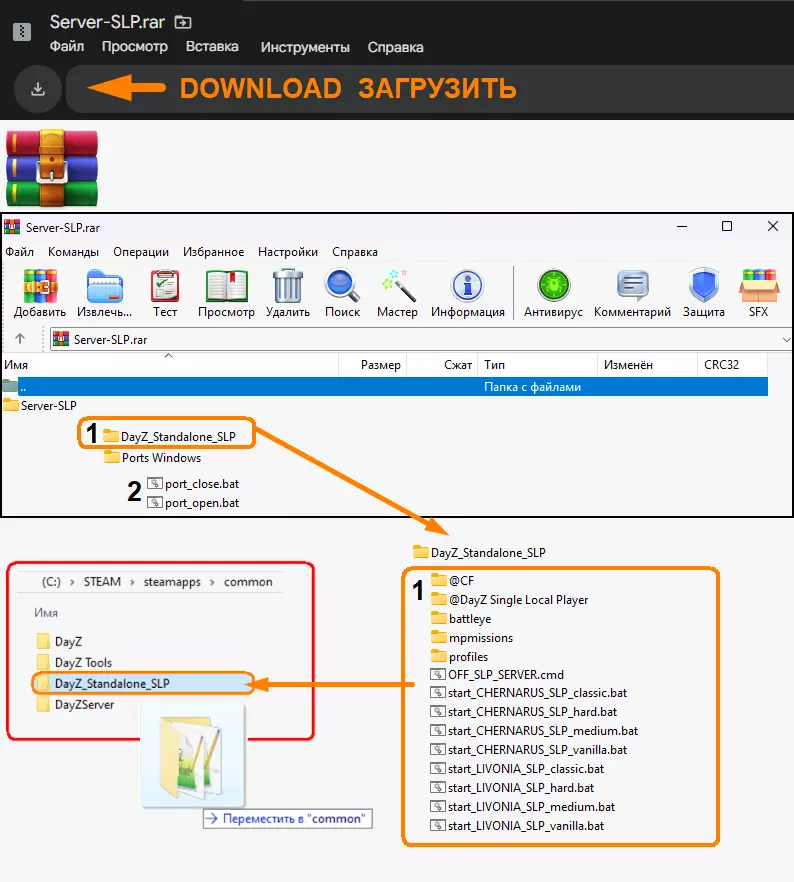 RU - EU - US 2026年基于SLP模组的本地服务器设置 【DayZ Single Local Player】 本指南分为两种版本: 1) 精简版(简短)—— 适用于了解模组工作结构及网络相关知识的用户。 2) 详细展开版(非简短)—— 适用于完全不清楚“该做什么、怎么做”,但有强烈意愿学习的用户。 +简易版: 通过已准备好的文件进行安装。 完成设置后你将获得什么?- 功能完善的本地单人模式,支持与朋友联机或单人游玩。【计划开发无需互联网的局域网模式!】 - 按照指南逐步安装,简单便捷,实现“即装即玩”。此版本基于从Steam购买《DayZ》后库中获取的纯原生文件构建,针对服务器和网络运行采用了最优化的解决方案。- 提供单人或与好友游戏时的本地网络调试解决方案,无需繁琐的额外设置、根据延迟平衡文件,以及解决因互联网服务提供商、电脑、网络或Windows版本问题而产生的各种个性化难题,这些问题通常需要通过在网上查阅大量信息,凭“自己反复试错”来手动设置。 - 服务器体积极小(已配置SLP模组的现成服务器约5GB!)。- 无需下载大量模组来让游戏变得真实有趣,也不必占用大量磁盘空间。 - 该单人版提供技术支持、帮助和维护,还有有趣的更新以及《DayZ》所缺少的真实机制。 - 针对不同游戏“难度等级”的预设设置,您可以根据自己的需求进行个性化编辑和调整。你可以调整战利品数量,增加或减少感染者数量,或者关闭某些事件、化学区域等。 - 免费!没有任何隐藏文件、订阅或“私人”模组。 所有内容公开且可用! 为玩家打造,由玩家打造!比起详细罗列,解释起来更容易,因为每个人的喜好和要求都不同,而且文件对各种设置的依赖性差异很大。 警告 - 啊啊啊啊啊-!@@@@$% 字母太多 - 甚至开始都觉得可怕!字母太多 - 甚至开始都觉得可怕!