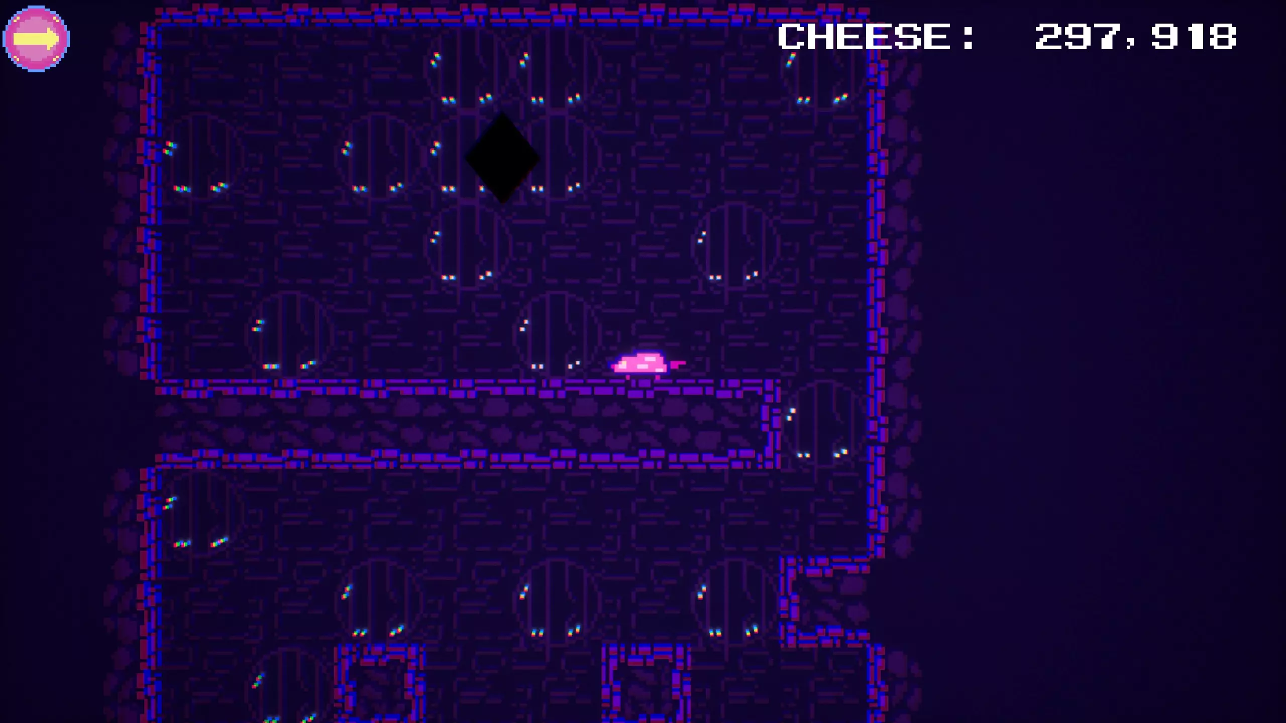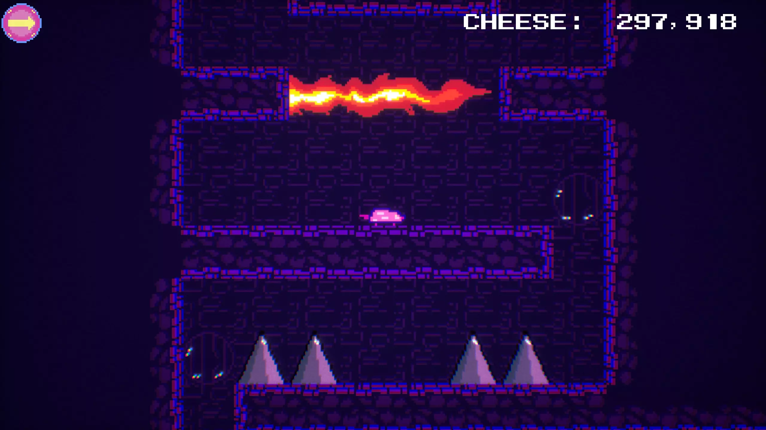 ORQ:介绍 《老鼠任务》的初始版本是隐藏秘密最多且相对容易找到的地点之一。该版本采用高对比度的明亮纹理,跑酷机制也相当简单。为简洁起见,以下简称其为ORQ。 前往方法: 1. 来到第一个房间上方的区域,这里需要跳过风扇以避开头顶的激光。 2. 地面上会有一个单格的洞。 3. 跳下这个洞后会落在一个平台上,向左走即可到达ORQ的入口。 4. 从入口处跳入【PLAY】按钮即可进入ORQ。