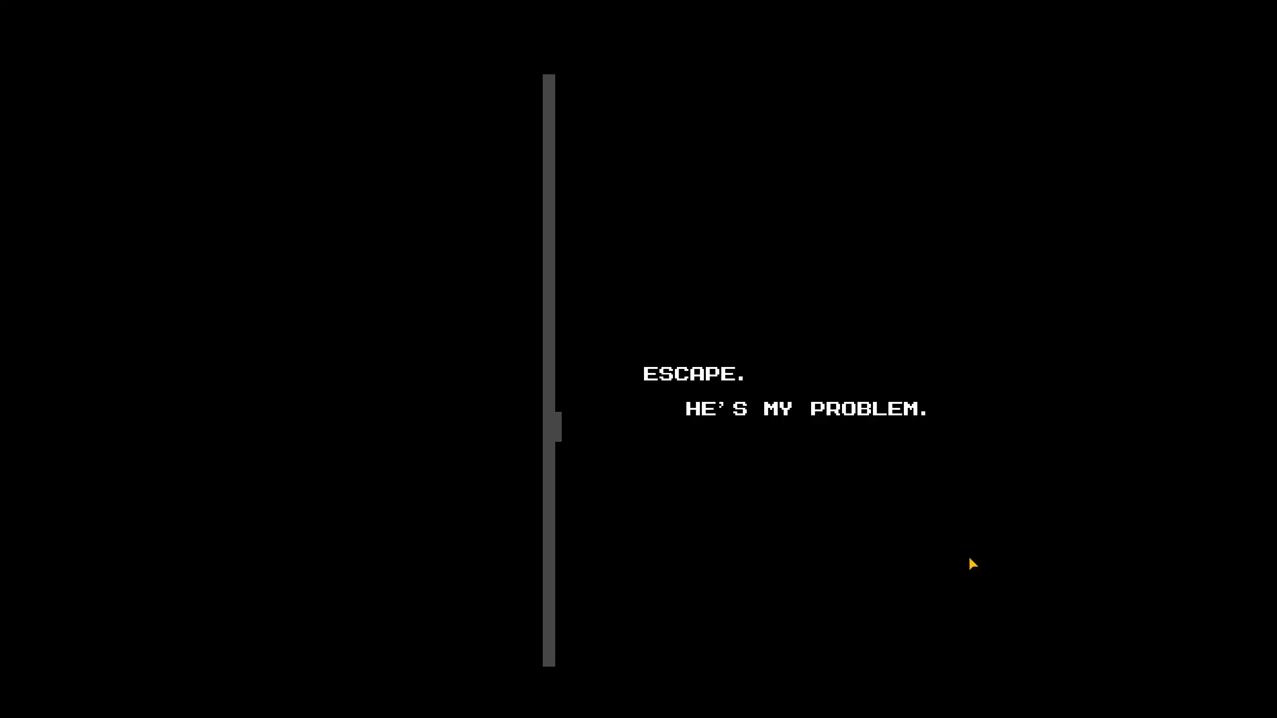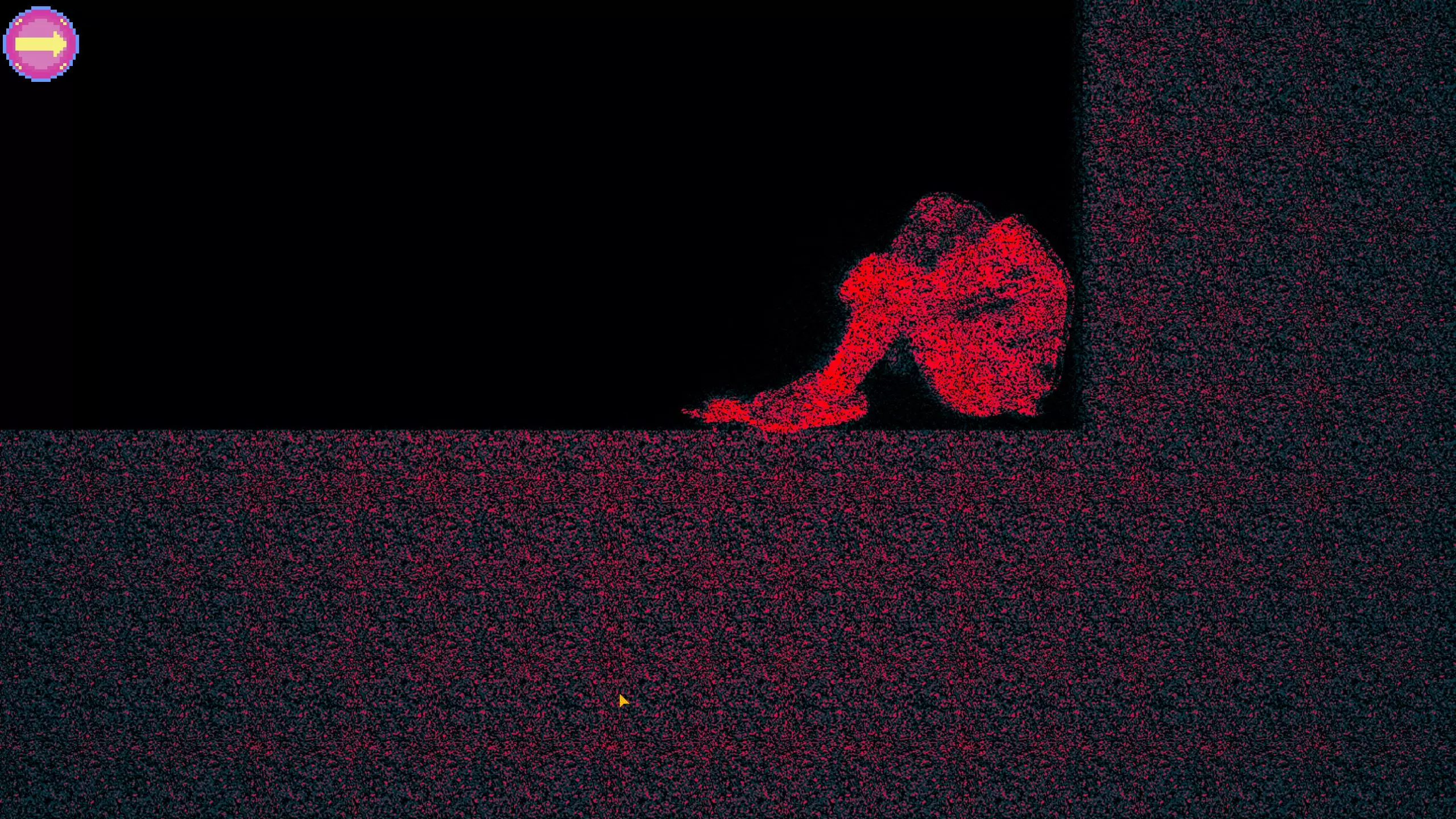 新房间的尽头有一个男人蜷缩在墙边,当你靠近他时,会播放一段简短的电子音效,随后游戏崩溃。