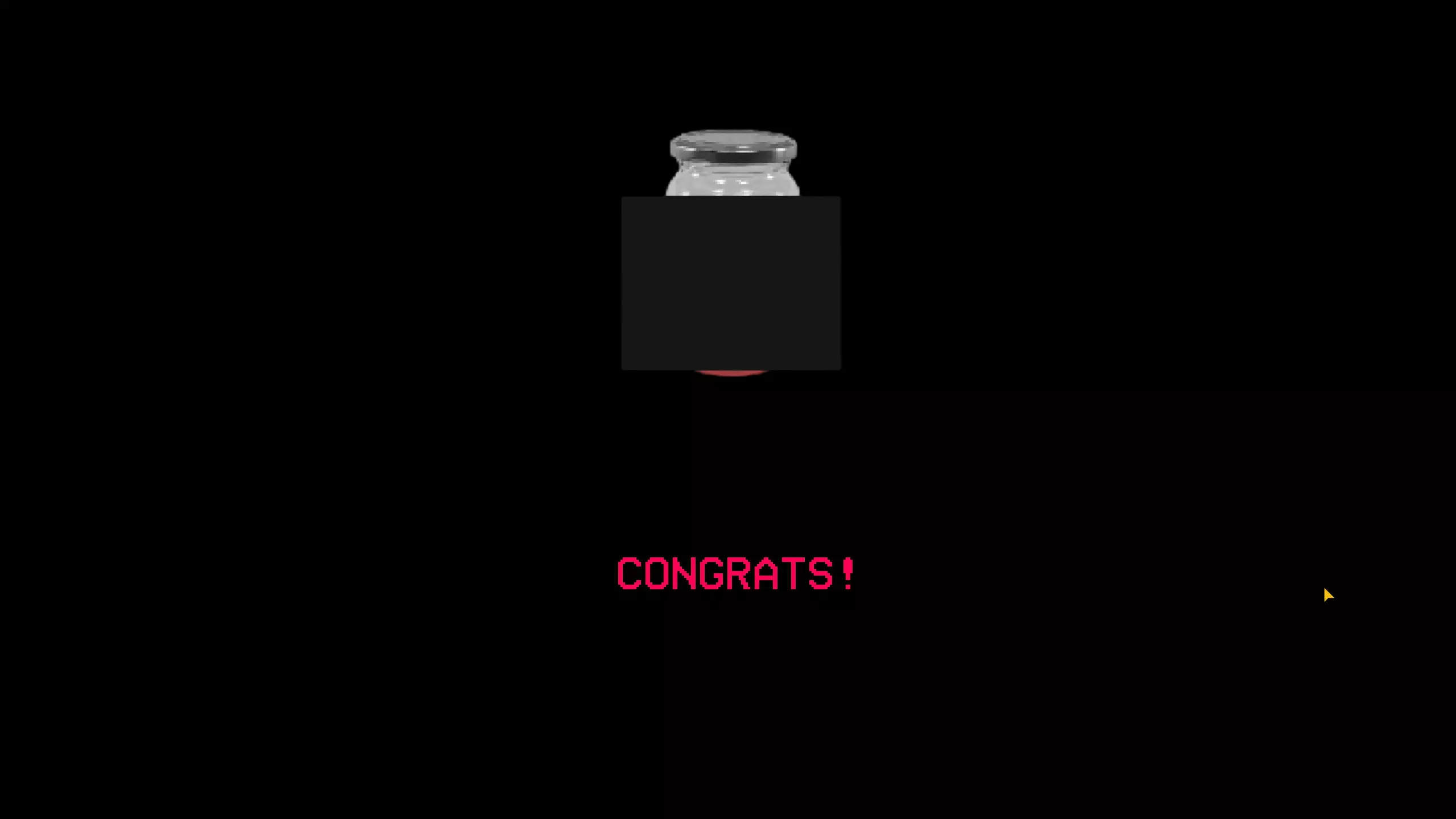 当你点击门时,门会打开并显示: 逃离。 他是我的问题。 然后会出现一个屏幕,上面写着: 恭喜!这是你的【面包/一杯水】
