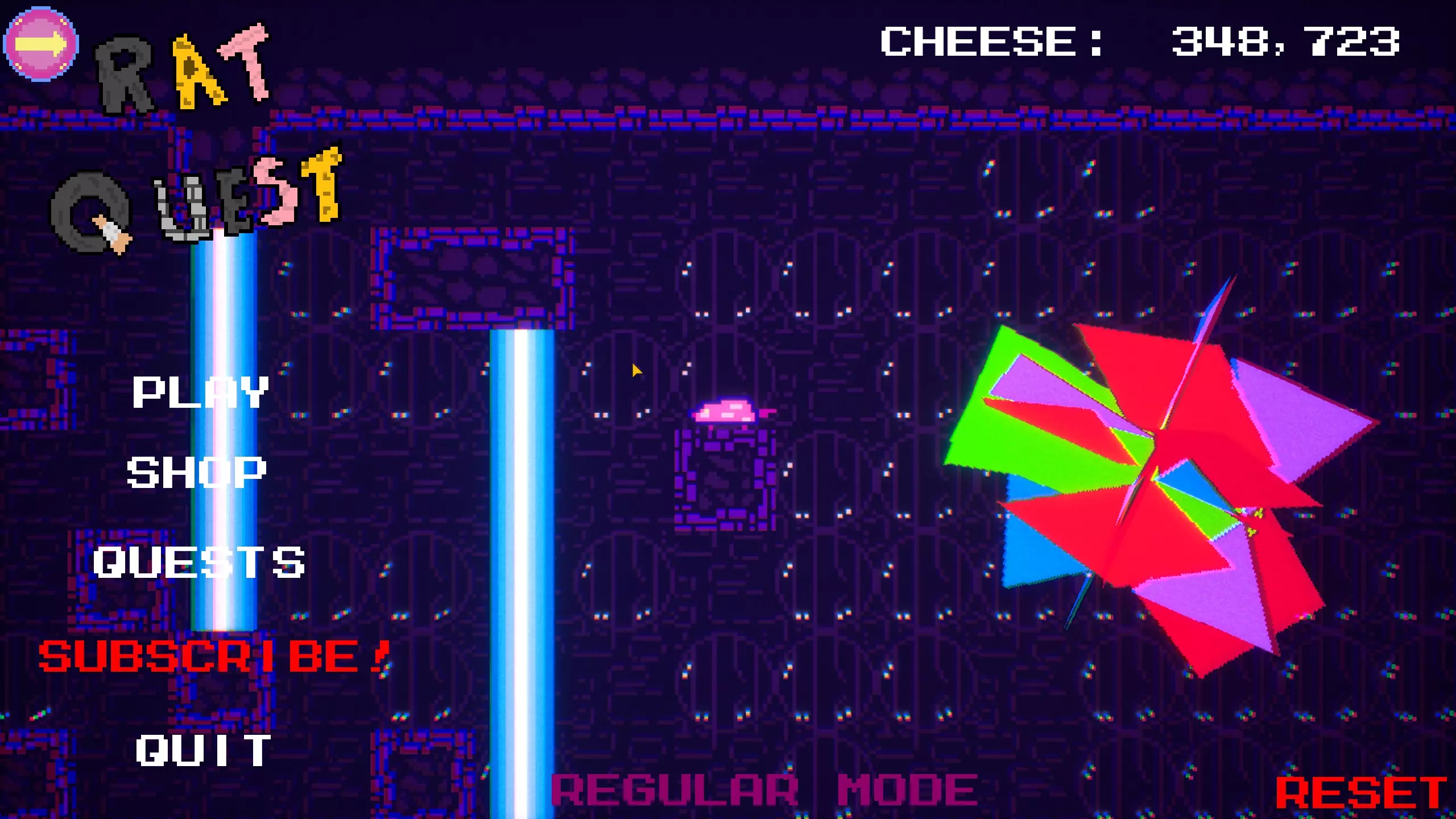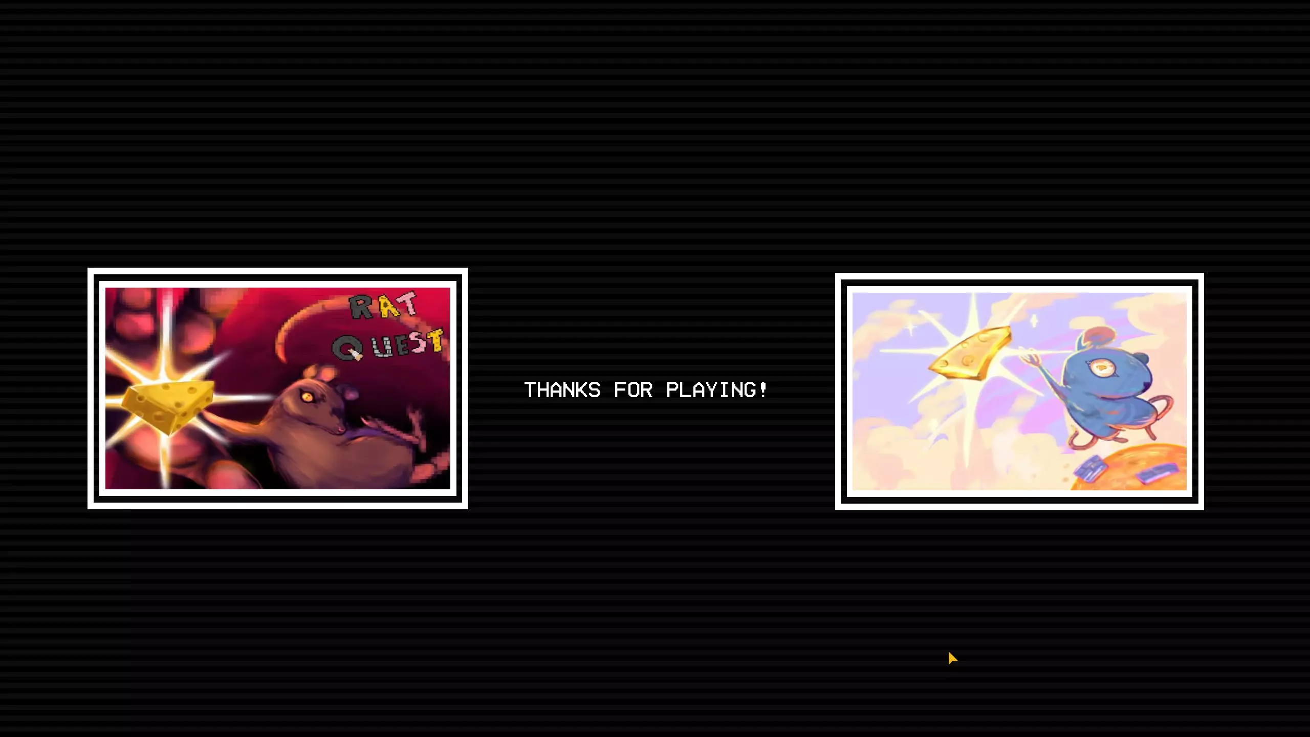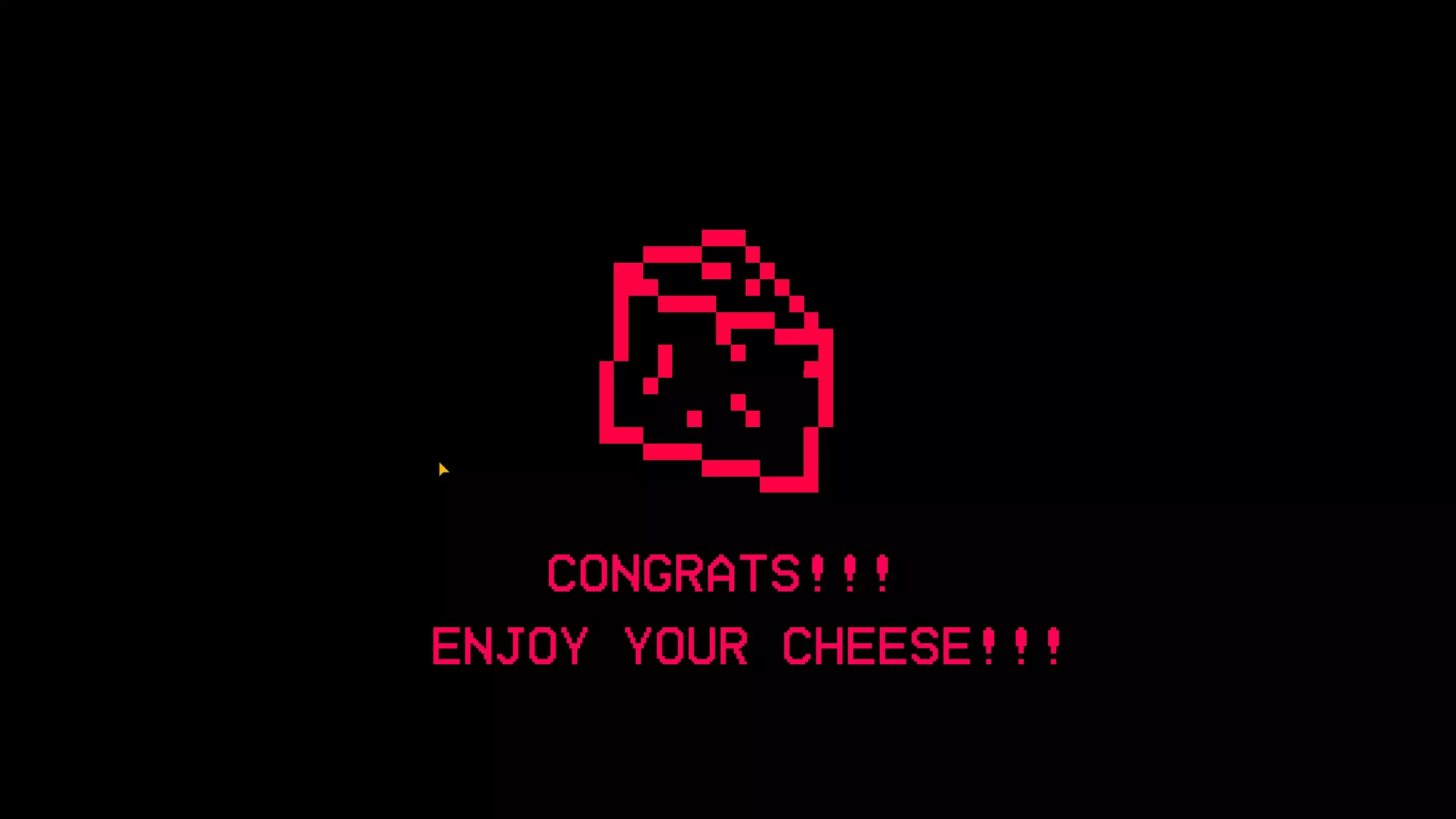 如果你杀死那只老鼠,它会说“对不起……”,然后屏幕上会显示“恭喜!!!享用你的(奶酪或披萨)吧!!!”,之后将你送回主菜单。