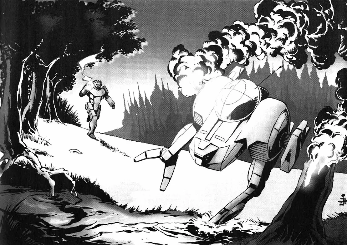 我支持布莱恩·李·帕尔多 插画: 杜安·卢斯 大卫·R·戴特里克 撰稿: 布莱恩·L·帕尔多 小博伊·F·彼得森 安东尼·普赖尔 戴尔·L·肯珀 肖恩·邓肯 《机甲战士》数据统计: L·R·布奇·利珀 L·罗斯·巴布科克三世 乔丹·韦斯曼 福里斯特·布朗 凯文·斯坦 编辑团队: 主编 L·罗斯·巴布科克三世 高级编辑 唐娜·伊波利托 编辑 托德·休特尔 制作团队: 制作经理 乔丹·韦斯曼 卡伦·范德梅 艺术总监 达纳·克努森 平面设计 乔丹·韦斯曼 封面艺术 达纳·克努森 排版 塔拉·加拉格尔 版面设计与拼贴 塔拉·加拉格尔 达纳·克努森 托德·F沼泽 约翰·蒂尔克 额外协助: 戴夫·怀利 布奇·利珀 克莱尔·赫斯 发行商:FASA 产品代码:8603 出版时间:1986年 ISBN-10:93178784X ISBN-13:978-0931787843 简介 作为描述内天体战争装备与物资系列参考书的最新分册,本书聚焦于【机甲】——继承战争中的主要武器。书中包含55种不同的机甲型号,每种型号均配有简要概述和概括性的战斗历史。此外,还提及了一些驾驶过各型号机甲的著名机甲战士的功绩与缺点。 【机甲战士】、【 aerospace战斗机】、【 dropship】以及少数载具也在本书中得到了同样详细的介绍。虽然本书并未涵盖所有已知的战争机器,但确实包含了当今使用的所有主要类别和型号。历史学家及历史专业的学生都会发现这份汇编是一本便捷且极具价值的参考资料。 技术手册并非旨在让人一口气从头读到尾,而是供人们在需要时查阅。条目按类别分章节编排,便于快速查阅,也方便对比不同类型的机甲、飞行器和载具。每个条目中还包含主要部件制造商的名称以及战斗数据。尽管本书编辑已尽最大努力提供完整准确的数据,但在这个近乎持续战乱和技术不断恶化的时代,并非所有信息都能得到核实。此外,继承领主们为获取军事优势,往往会竭力保守秘密。这些现实情况,再加上本书大部分信息是从整个文明太空收集而来,且来源往往带有偏见,有时可能会产生相互矛盾的表述。尽管编辑已尽力剔除彻头彻尾的谎言和捏造内容,但部分资料或许仍会存在歧义。 轻型机甲 轻型机甲的重量范围为20吨及以上,但不包括40吨。关于重量不足20吨的机甲的传闻屡见不鲜,但在本文撰写时,尚无此类型号的可靠数据。 轻型机甲是价格最低廉的战斗机甲,也是当今战场上第二常见的类型。即便是最不起眼的部队和卫戍部队,通常也至少配备一台轻型机甲,而且这类机甲在所有已知星球上都能见到。 在战场上,轻型机甲主要用于侦察任务。它们超乎寻常的速度和跳跃能力使其能够避开激烈战斗,侦察敌方阵型。一些富有创新精神的指挥官还将轻型机甲用作纵深渗透单位,深入敌后以破坏后方区域的补给和通讯。部分轻型机甲上配备的特殊激光测距仪使其能够充当火炮甚至其他机甲的前沿观察员。无论拥有何种优势,轻型机甲仍必须避开体型更大的同类。即便数量众多,它们也无法与重型机甲抗衡。LCT-1V 蝗虫