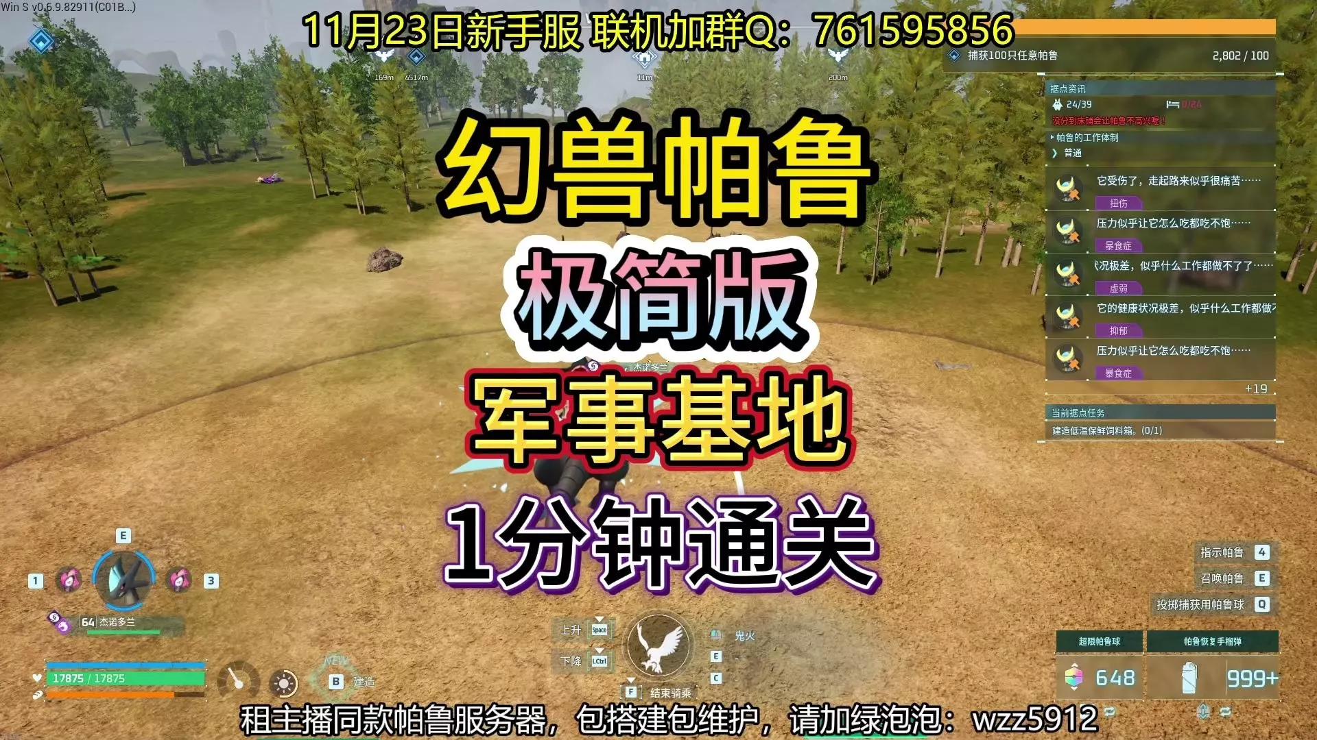 服务器中等偏简单难度,死亡不掉落,无硬核,玩家超多体力,超多负重,拒绝坐牢!每 45 分钟触发一次陨石事件,0秒快速孵蛋。改良了商人系统,改良了粉碎机,可以合成…