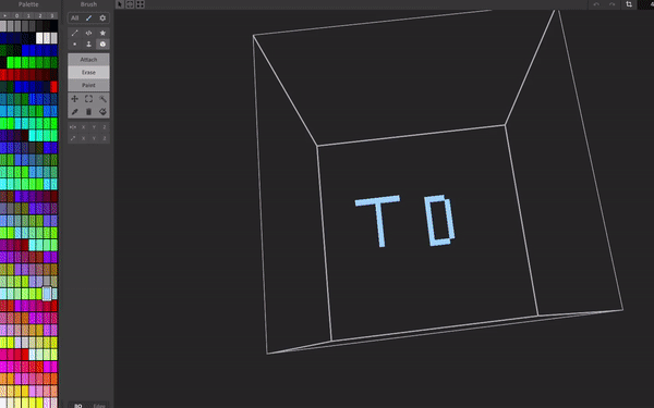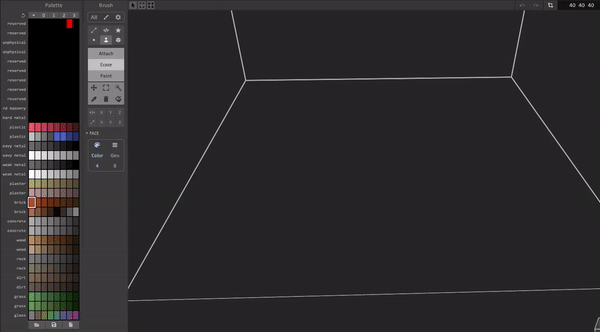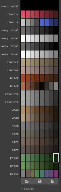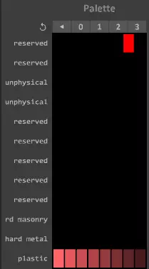 这就是基本内容了。 颜色面板 说明:《拆迁》通过颜色面板中的颜色索引来确定物体使用的材质。 下载此.vox文件并在MagicaVoxel中打开。材质列在左侧,位于面板旁边,且无法更改。不过颜色可以更改。