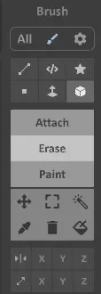 最常用的工具是【方框工具】,它默认处于选中状态。你可以在其下方切换附加模式和擦除模式。另一个实用工具是【面选择工具】,该工具能让你挤出体素或删除体素。