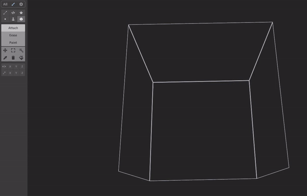 让我们通过选择擦除模式下的面工具并在立方体顶部向下拖动来删除默认立方体。