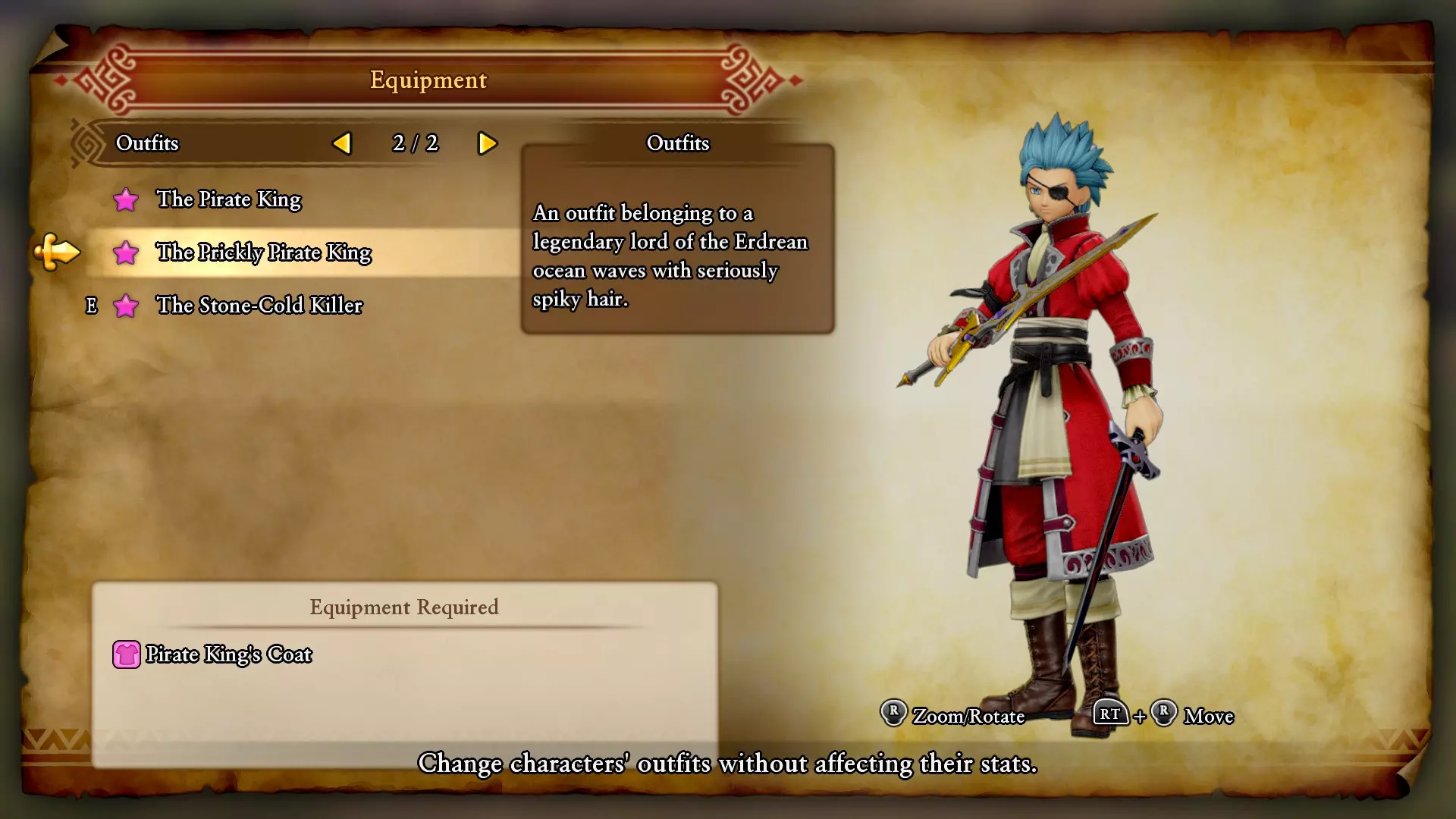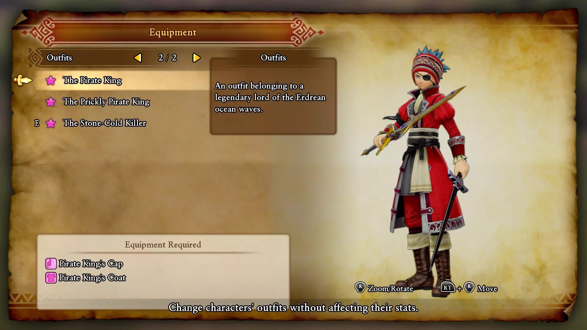 海盗王的帽子:洛奈卢的游戏后事件(与剧情相关)。 海盗王的外套:科布石镇重建后可购买。 冷酷杀手