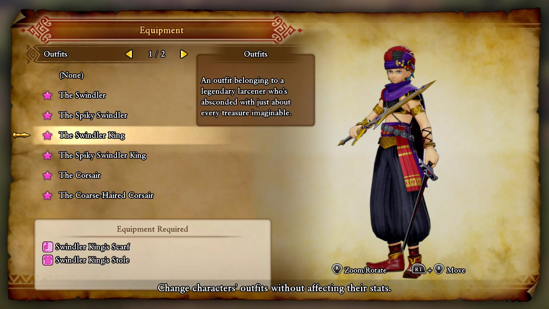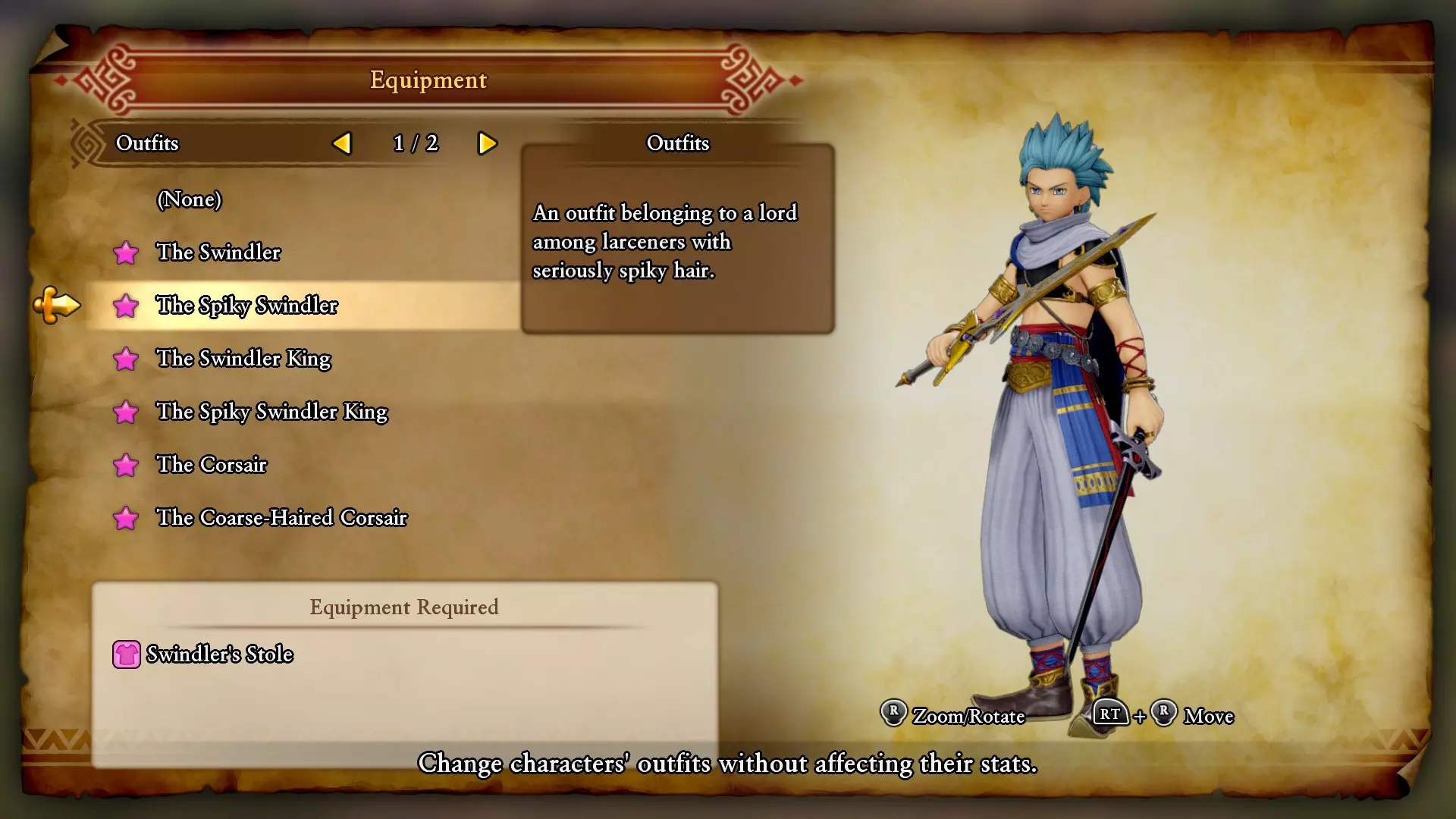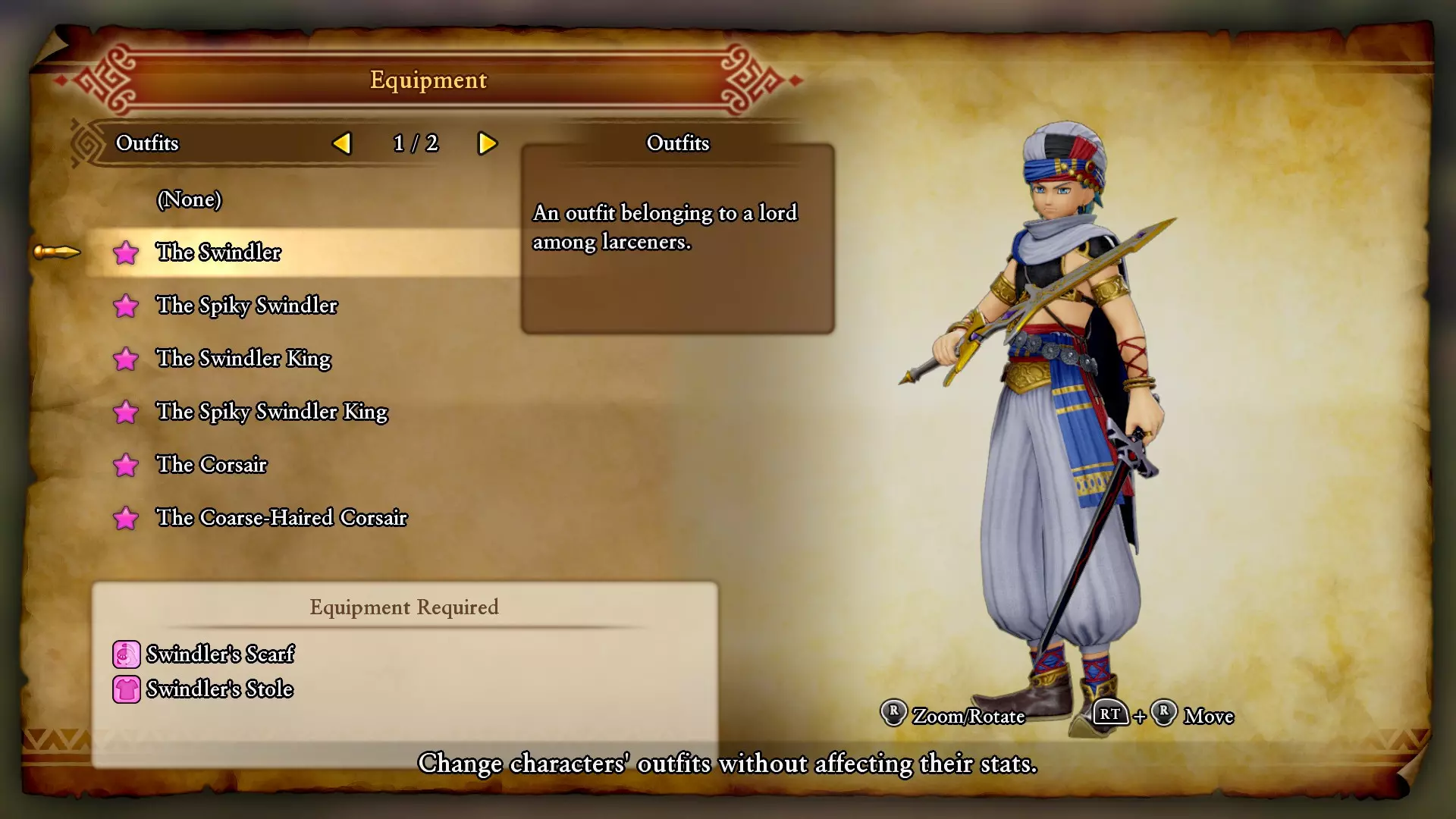 特鲁丹头巾与服饰:在菜单【其他】>【系统设置】>【领取特别奖励】中获取。 埃里克的服装 欺诈师 / 尖刺欺诈师