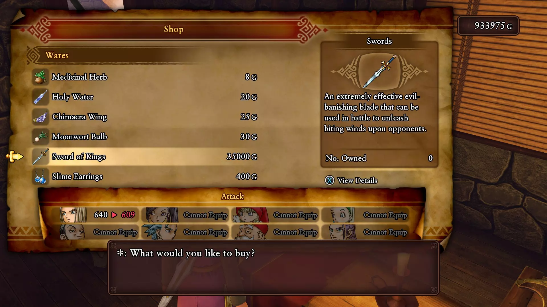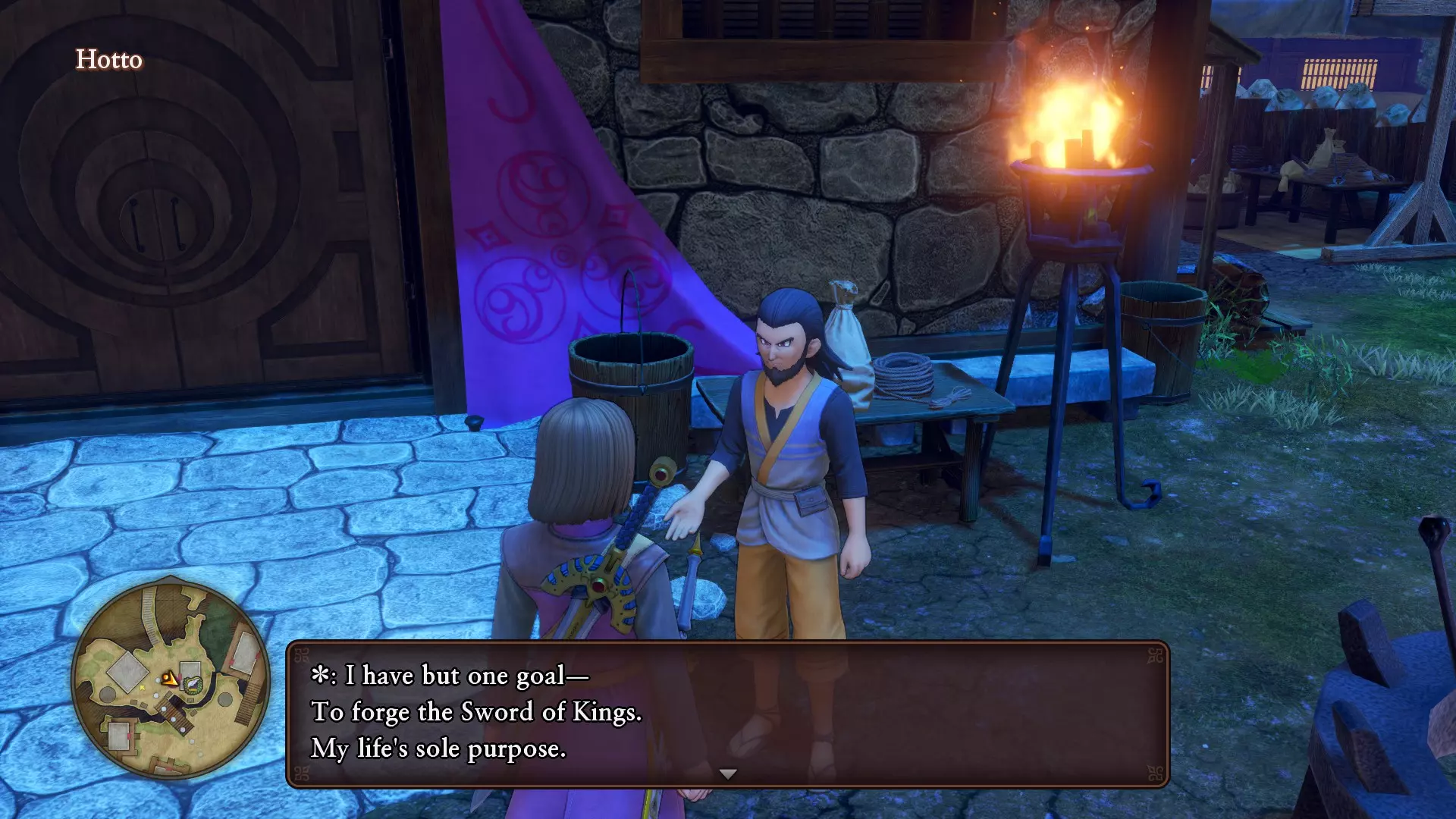 一旦你把物品交给他,传送到世界上任何一个营地,休息一晚后返回霍托村。那个男人身后的道具店会以35000G的价格出售王者之剑。去把它弄到手吧。